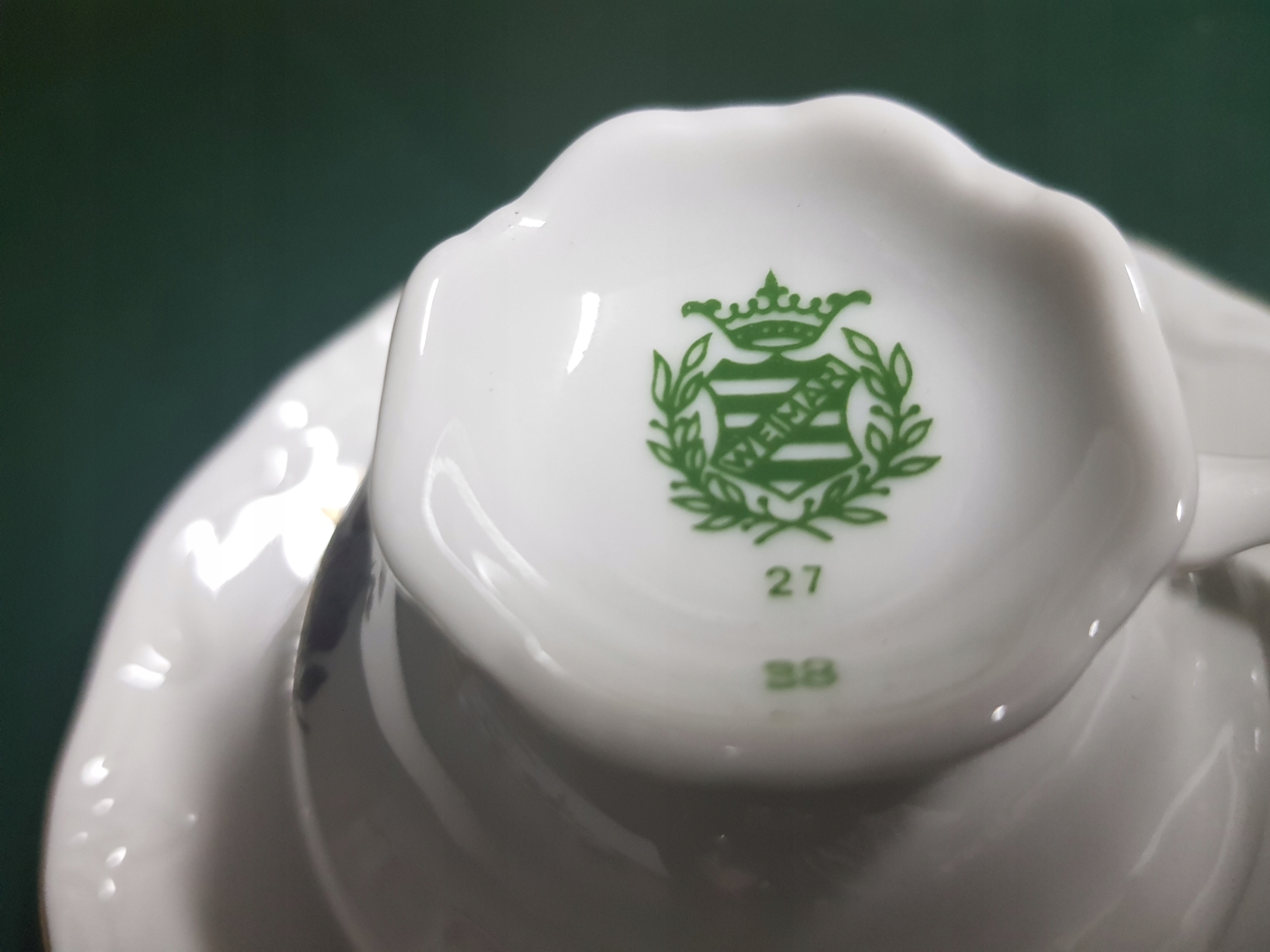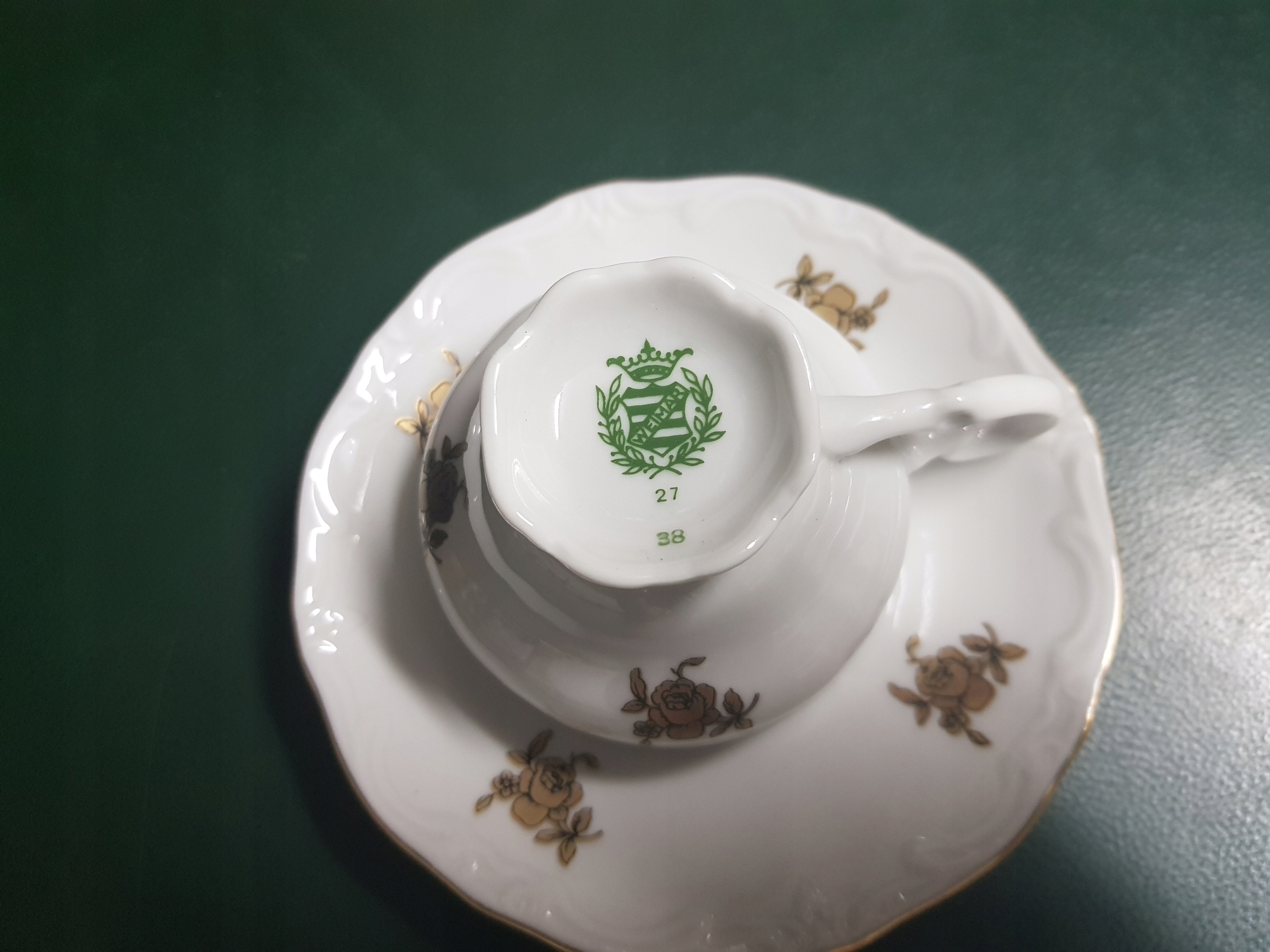 Предмет аукциона — чашка мокко с кремом из Веймара. Украшенная золотой розой.