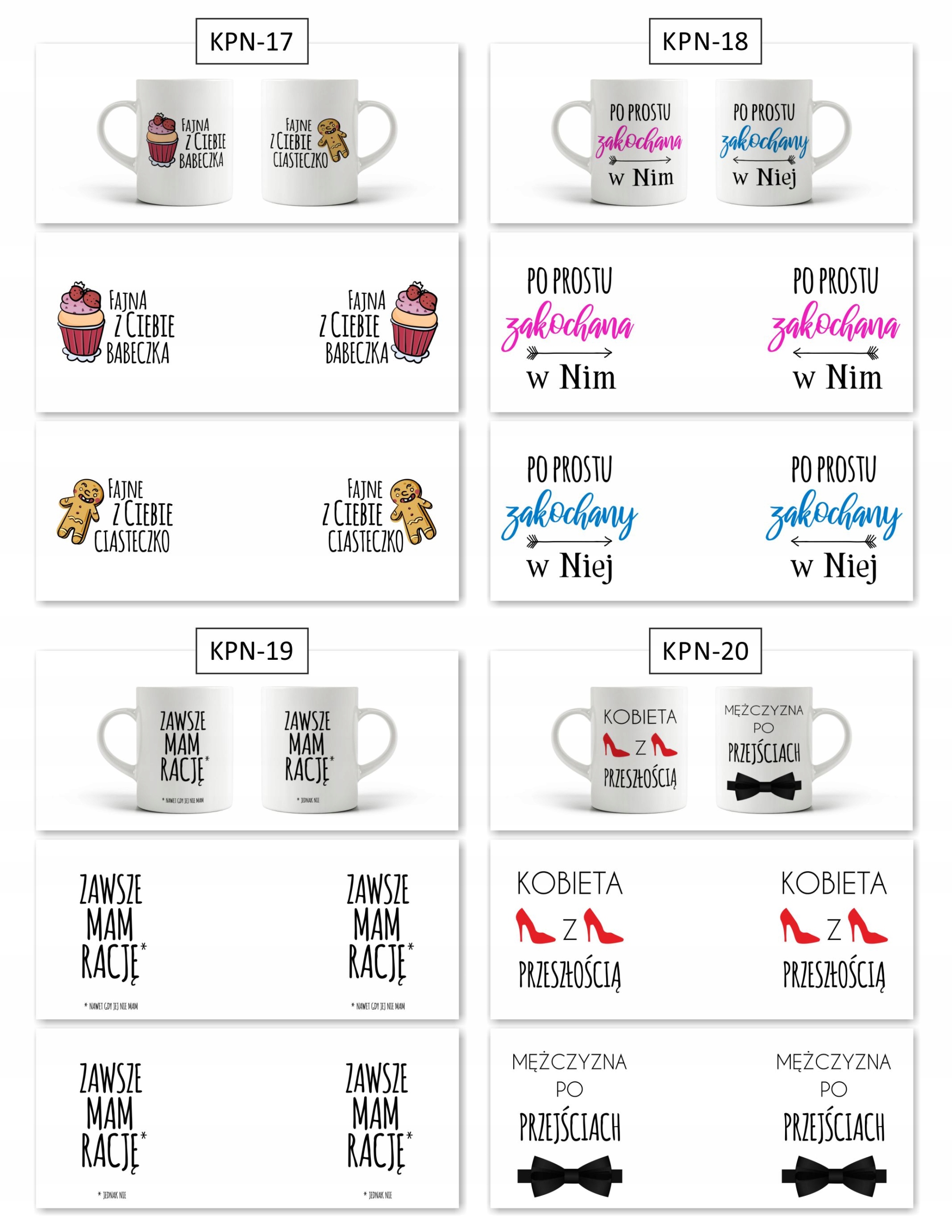 - неперсонализированные – две одинаковые кружки, образующие единое целое – на каждой кружке с одной стороны есть версия для нее, а другая – для нее. версия для него, с другой
