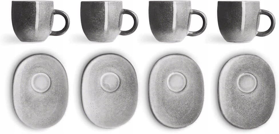 РУЧНАЯ РАБОТА – Благодаря индивидуальному градиенту серого, изготовленная вручную чашка Кофейный сервиз станет звездой вашего стола. В КОМПЛЕКТЕ СОУСЫ. В комплект кофейных чашек входят 4 одинаковых овальных блюдца. Рядом с чашкой достаточно места для ложки и небольших лакомств, например печенья или шоколада.