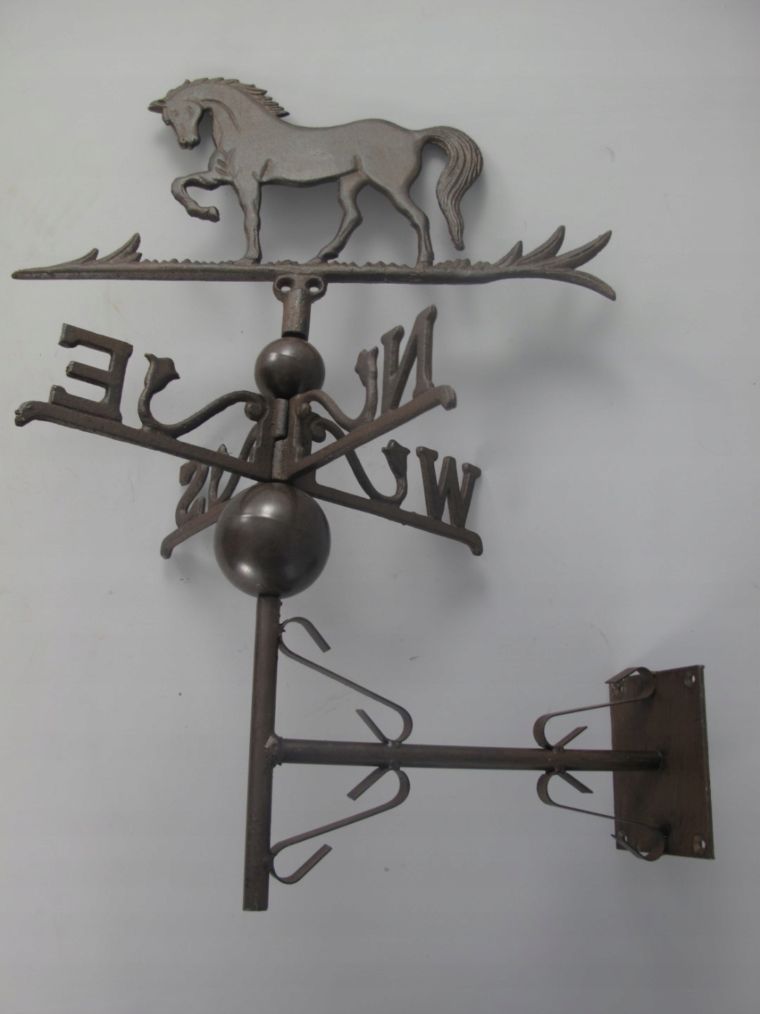 Флюгер внизу имеет стационарно закрепленные указатели, описывающие направления света, под петухом стрелка, указывающая направление ветра. h2>ЛОШАДЬ вращается вокруг своей оси - надевается на штифт