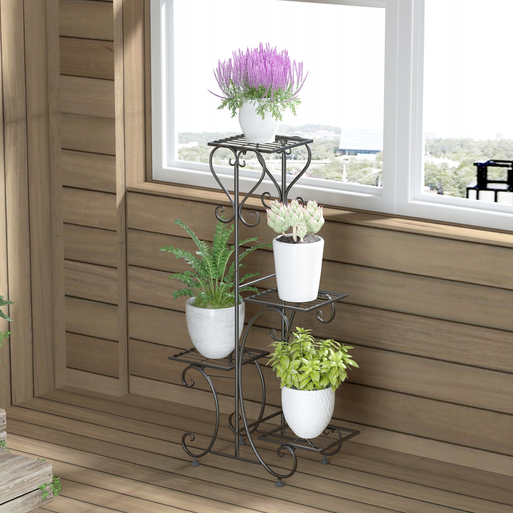 Подставка для садовых цветочных горшков unho хорошо сконструирована и имеет 4-уровневое пространство, что создает привлекательный вид. отображать. Изогнутая линия не только придает уникальный вид, но и повышает устойчивость мебели.