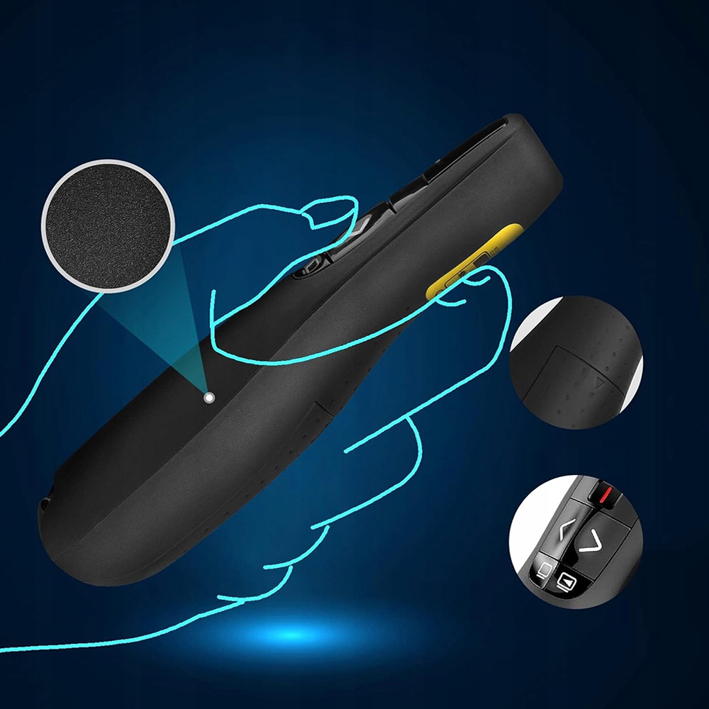 🖐🏻【Эргономичный дизайн и портативность】 Беспроводной презентер имеет эргономичную форму и удобно лежит в руке. Он компактный, легкий и портативный, помещается в любой карман и его легко носить с собой. Это делает его незаменимым инструментом во время курсов, лекций и конференций.