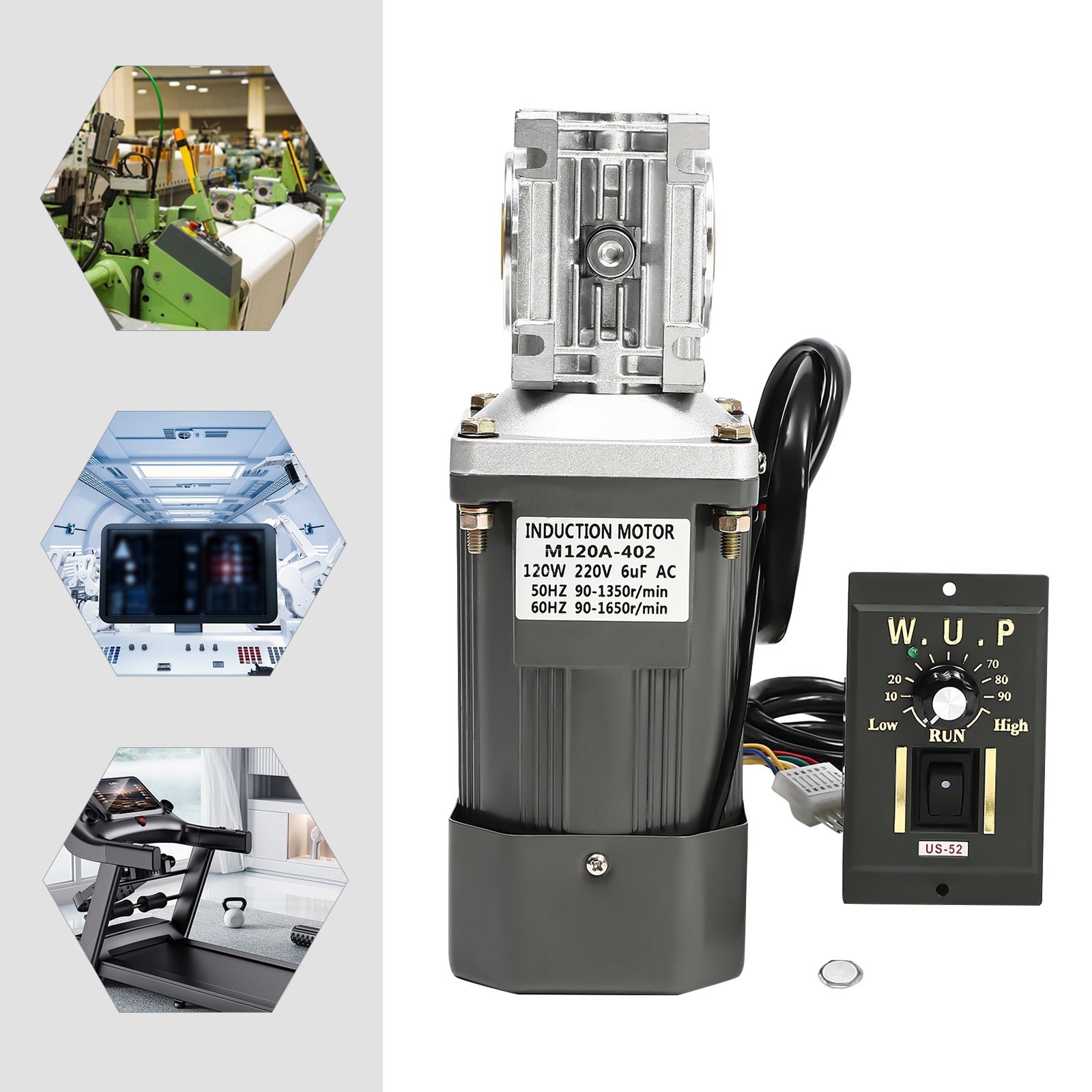 - Это червячный двигатель переменного тока мощностью 120 Вт, напряжением 220 В, который может достигать скорости 1650 об/мин. В нем используются катушки из чистой меди, он обеспечивает малошумную и мощную работу, что делает его подходящим для дома, поделок, школьных проектов и большинства других продуктов, которые вам нужны. Вы можете вращать ручку управления скоростью, чтобы регулировать скорость двигателя, добиваясь желаемого эффекта. Это отличный помощник во многих сценариях и рабочих средах.