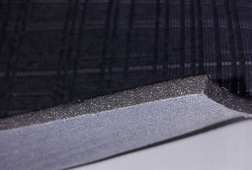 - Ткань дополнительно армирована снизу пенополиуретаном толщиной около 5 мм и сеткой, предотвращающей рассыпание и смещение чехлов в процессе использования.