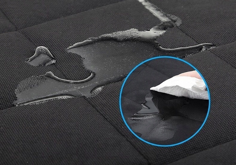 ВОДОНЕПРОНИЦАЕМОСТЬ И ПРОТИВОСКОЛЬЖЕНИЕ - покрытие чехла не пропускает воду, что не только защищает обивку автомобиля от грязи и влаги, но и значительно облегчает очистку поверхности коврика; нижняя часть коврика покрыта специальным нескользящим слоем резины, что повышает устойчивость сиденья.