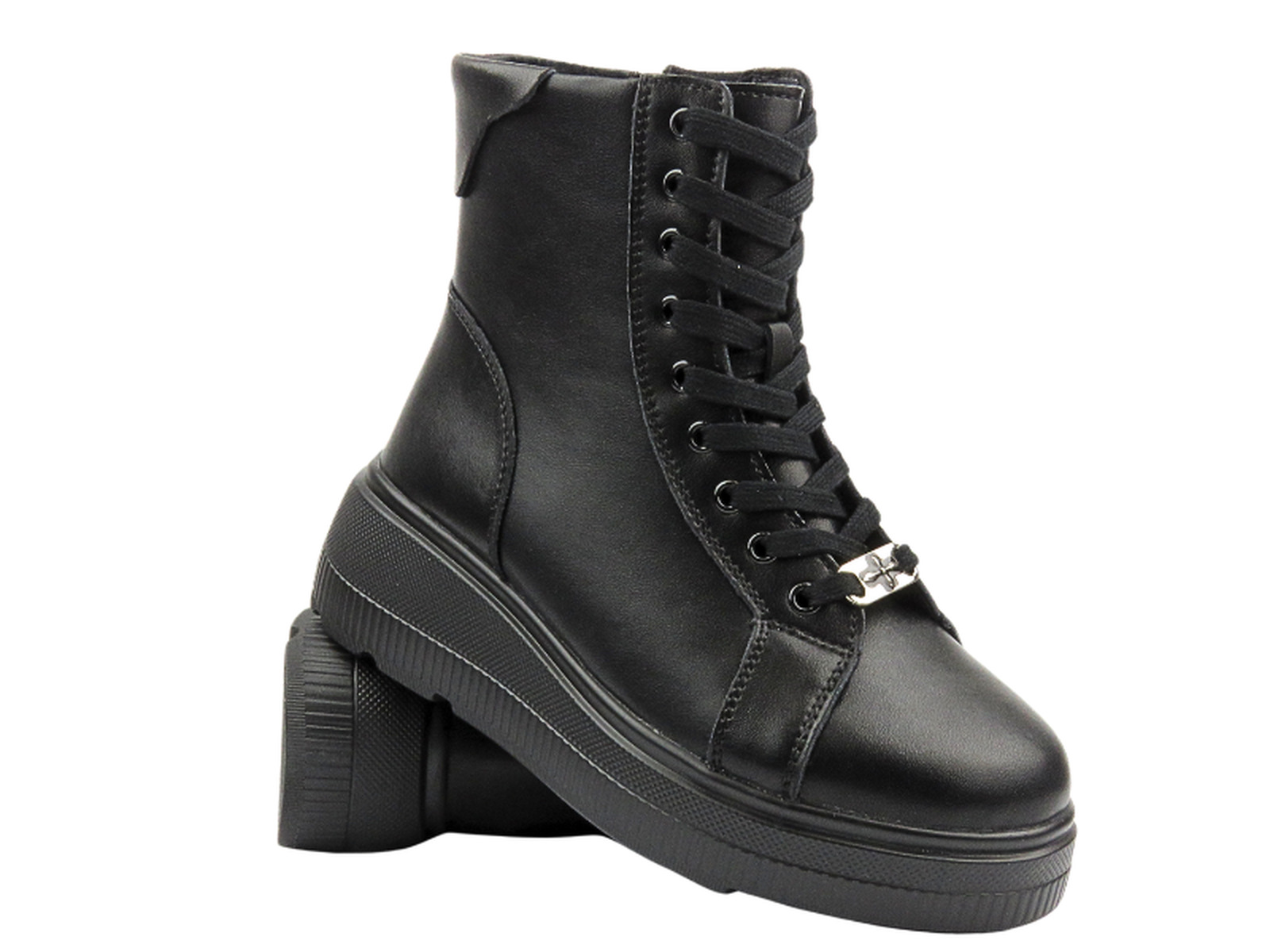 Женские кожаные ботильоны на платформе - Sokolski Z24-223, Черный