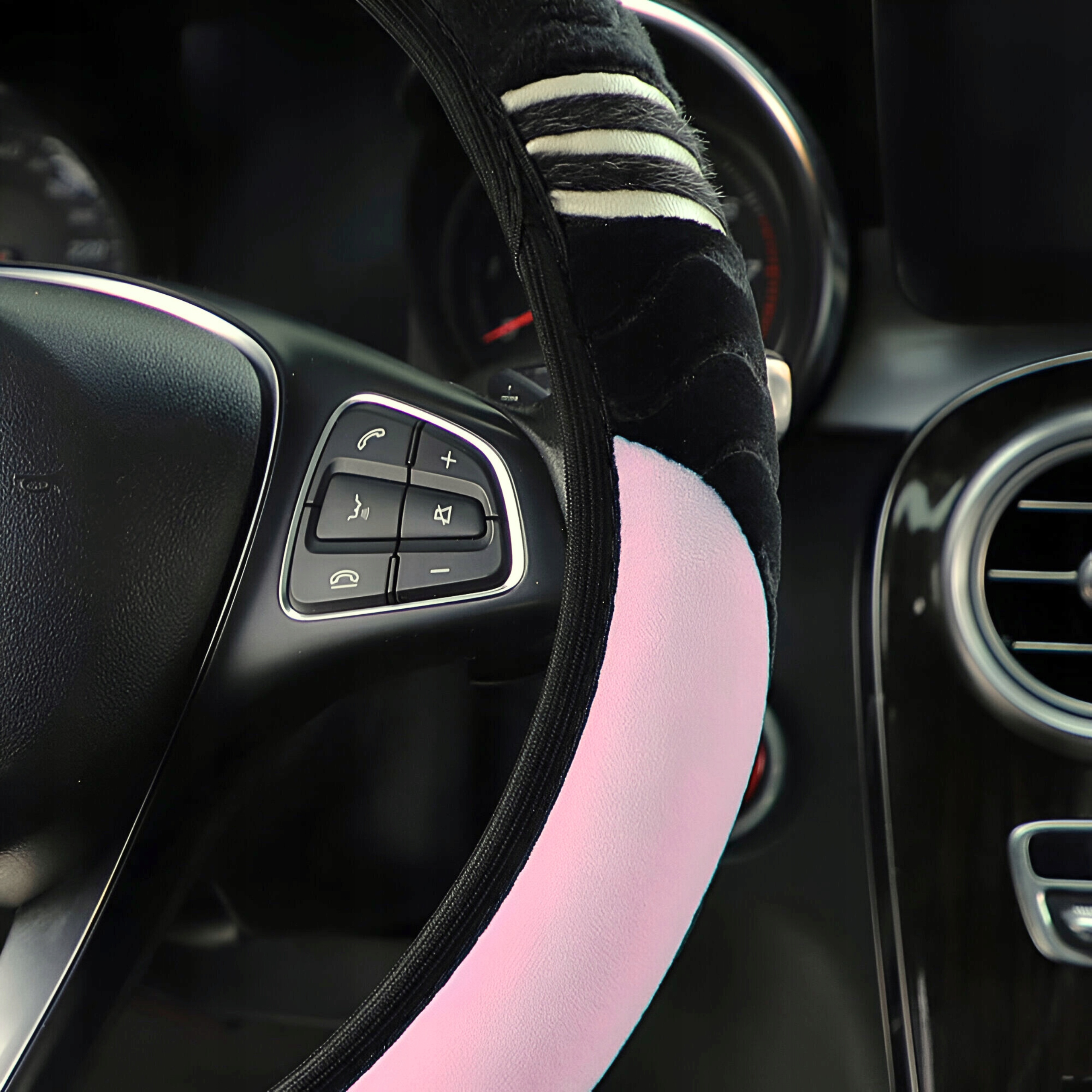 ЧОХАЛ НА РУЛЬ ХУТРО КОТ УНІВЕРСАЛЬНИЙ ЧОРНО-РОЖЕВИЙ