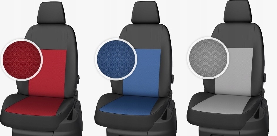 Чехлы изготавливаются из обивочной ткани на сидениях и усиленного трикотажа на спинках сидений. Они ламинированы пенополиуретаном и подкладкой, благодаря чему материал идеально прилегает к сиденьям и не дает пене осыпаться.