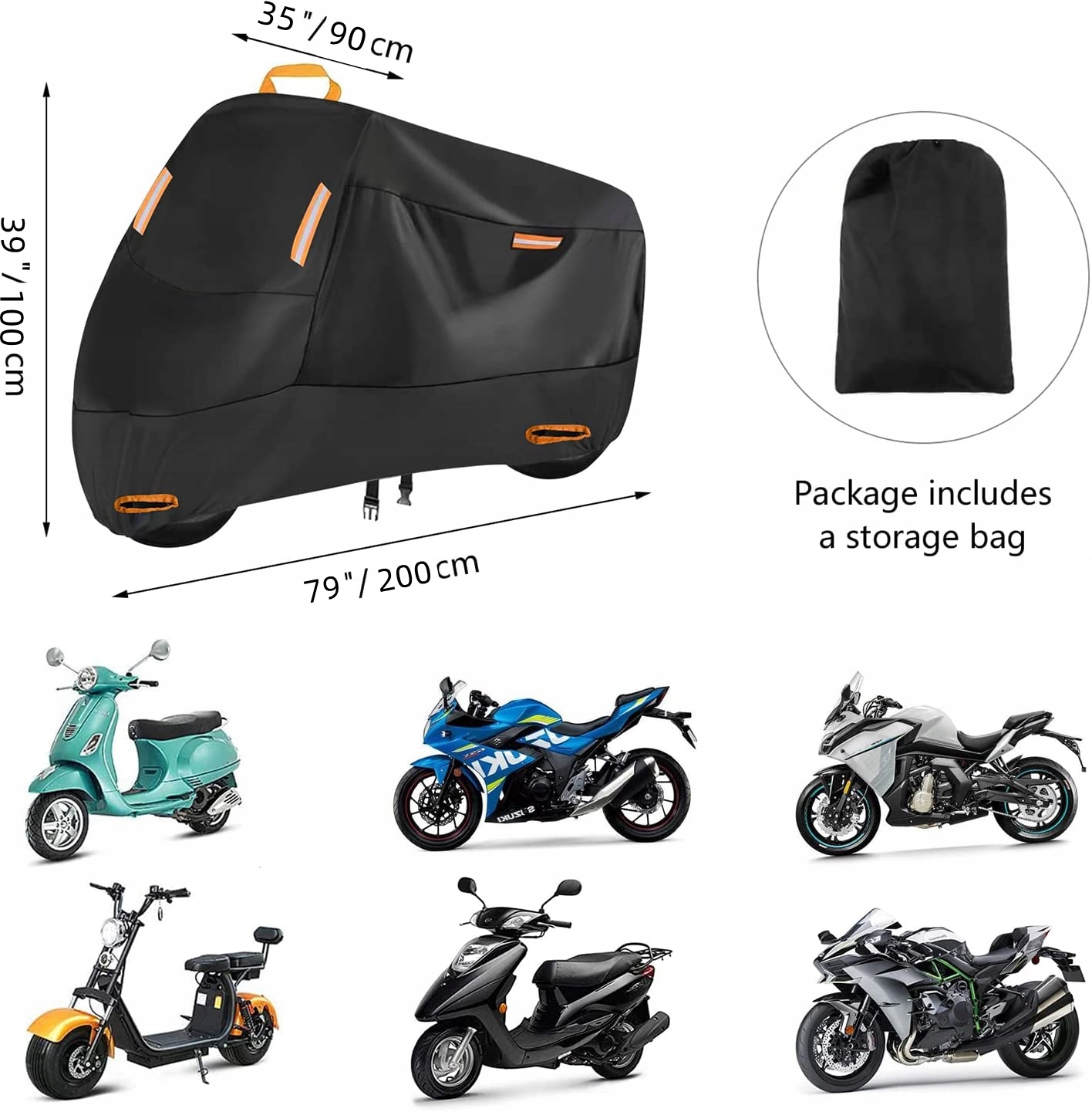 Размер: размеры этого мотоциклетного чехла 200 x 90 x 100 см подходят для большинства мотоциклов, таких как Harley Davidson, Honda, Yamaha, Kawasaki, Suzuki и т. д.