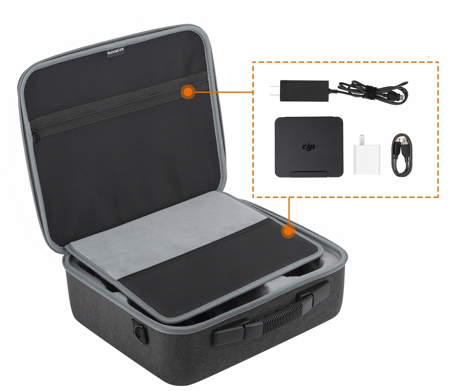 - отдельное место для дрона, пульт дистанционного управления, 3 дополнительных аккумулятора, дополнительные аксессуары