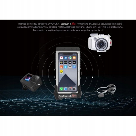 Благодаря возможности использования телефона в корпусе Divevolk Seadouch 4 Max, ваша поездка будет безопаснее. А корпусы, полностью изготовленные из металла, заключается в том, что сигналы Bluetooth и Wi -Fi не заблокированы. Это позволяет вам быстро и эффективно подключаться к другим устройствам.