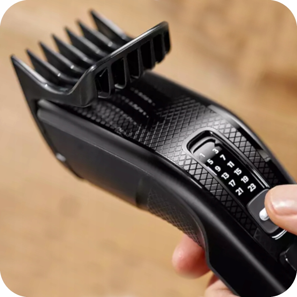 - 13 различных настроек длины стрижки, от 0,5 мм до 23 мм. У вас есть полная свобода в выборе стиля и внешнего вида.