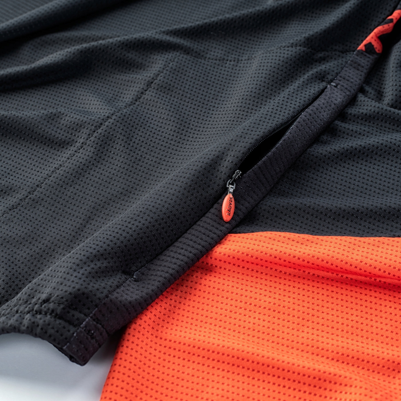 Обеспечивает высокий комфорт во время тренировок. Не вызывает потертостей. Изготовлен из приятного на ощупь, эластичного материала, обеспечивающего комфорт и не сковывающего движений. Кроме того, он быстро сохнет, что сказывается на практичности использования. В задний карман поместятся все необходимые предметы. Для обеспечения безопасности дизайнеры оснастили футболку светоотражающими элементами.