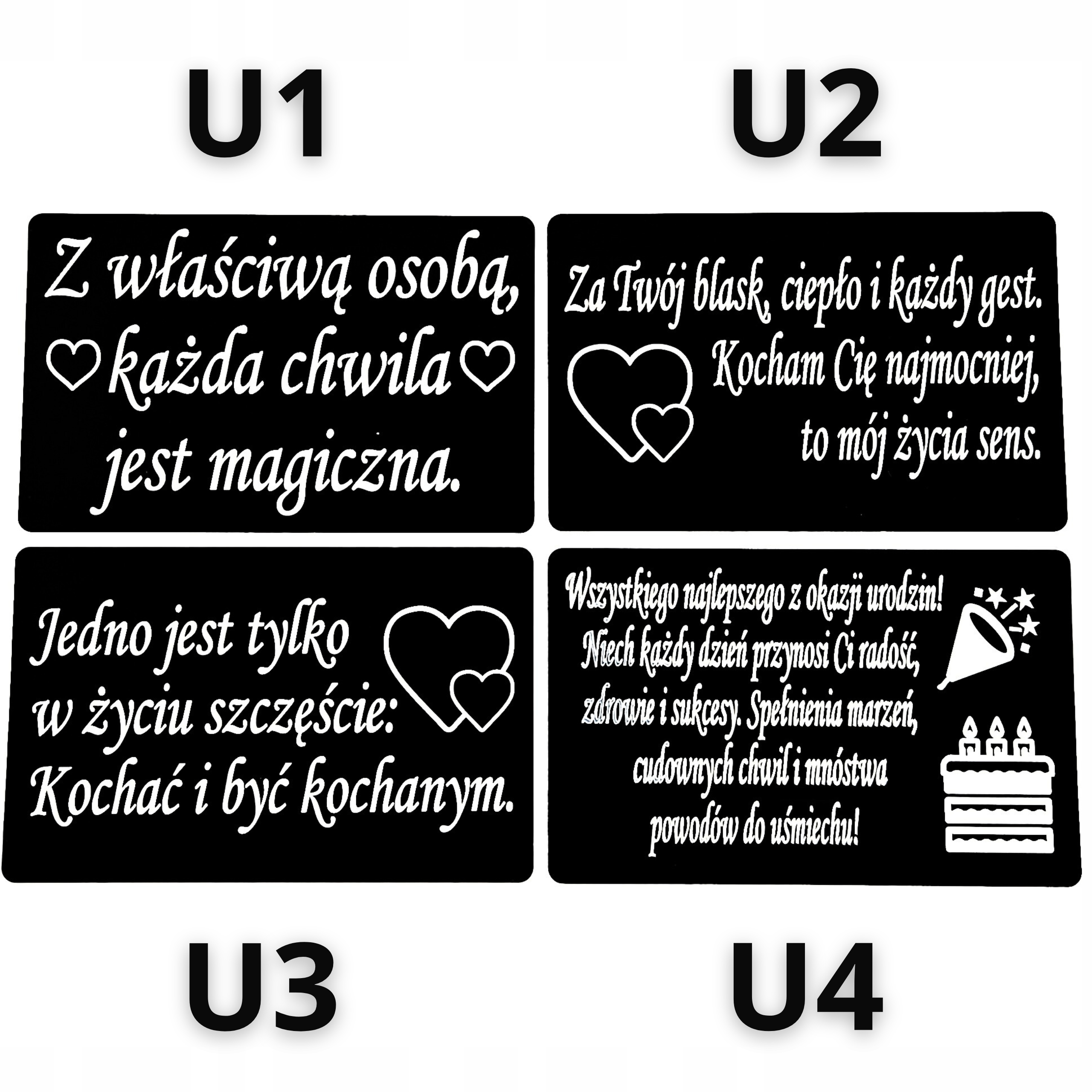 Уникальное предложение! Мы сделаем персонализированную посвящение для вас на черной тарелке, размещенной в середине элегантной универсальной коробки - Полностью бесплатно! Сделанный шаблон (U1, U2, U3, U4) или отправьте нам текст + выбран символ