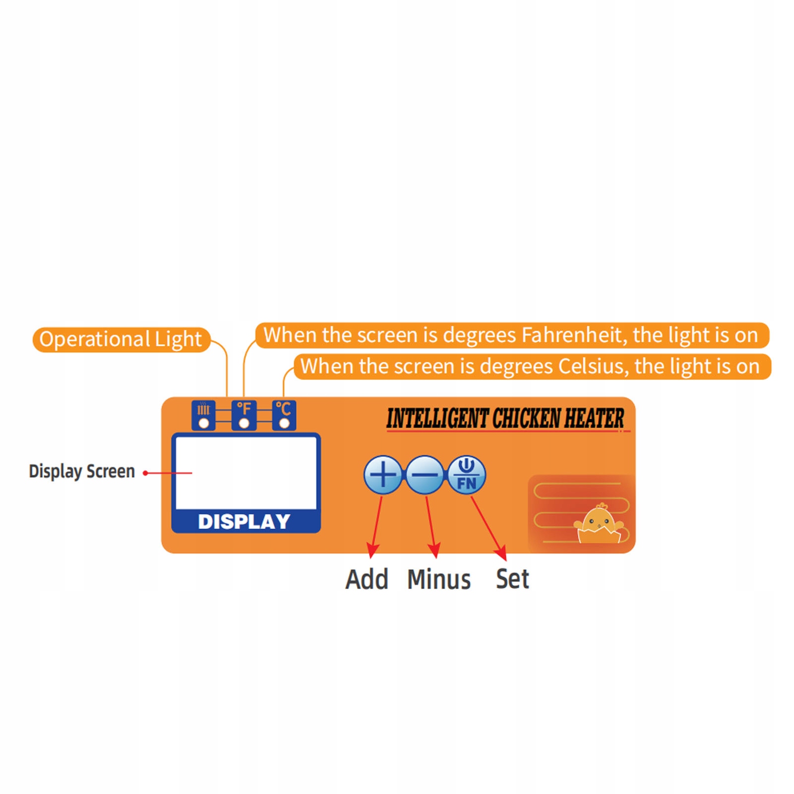 2. Управление многими режимами: нагреватель цыплята имеет много режимов, таких как температура, дни, часы и коммутаторы, которые, благодаря простой работе, могут удовлетворить различные потребности нагрева. Простой в использовании и гибкий.