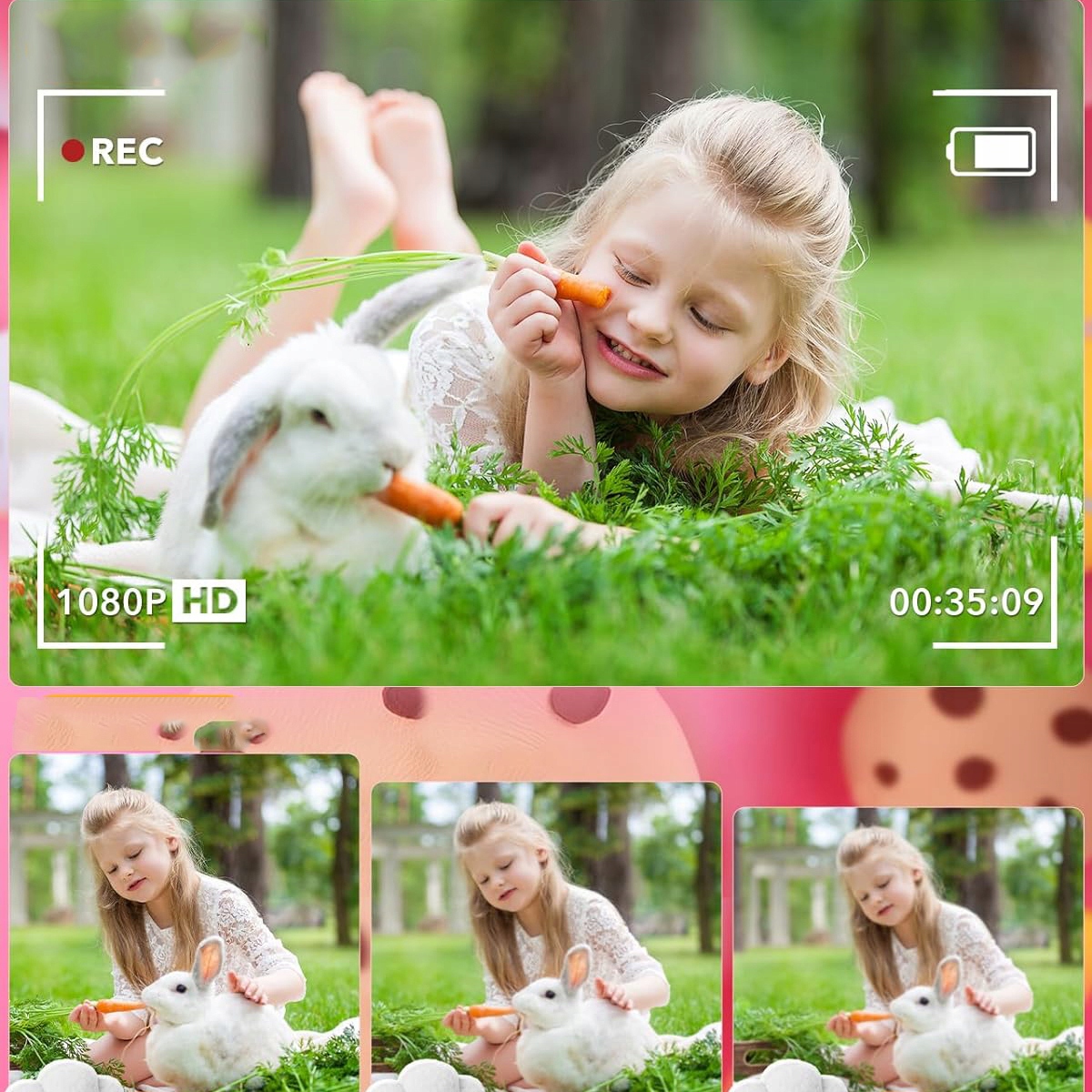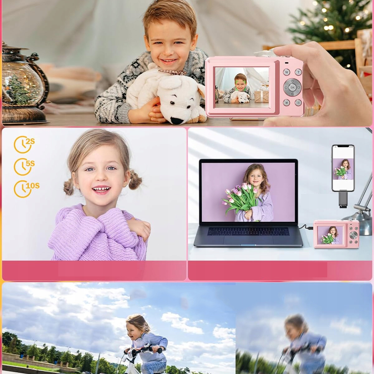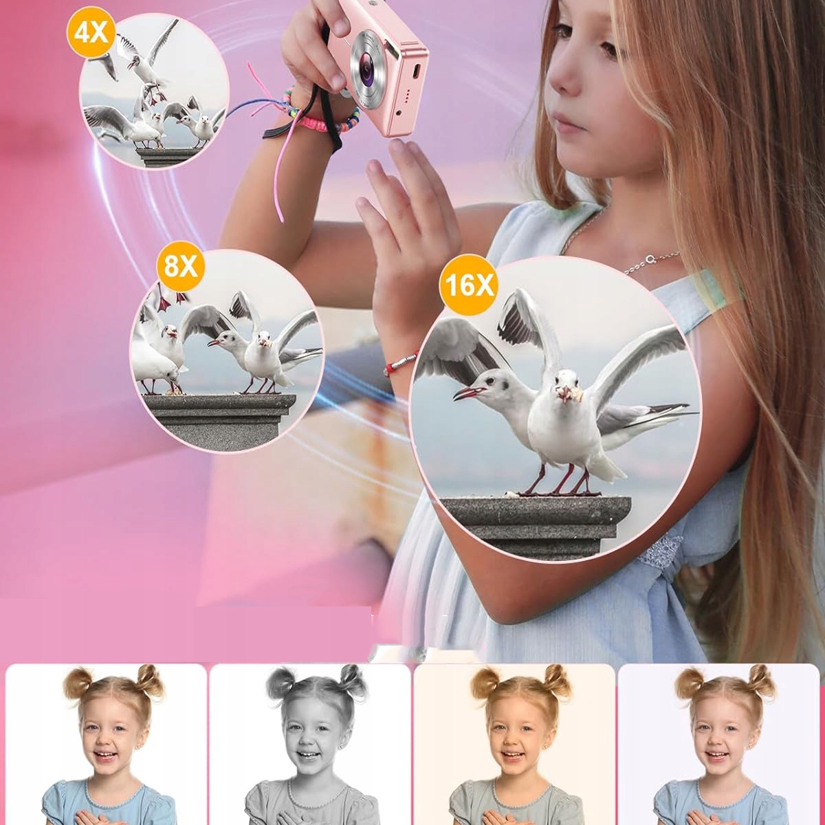ЦИФРОВАЯ КАМЕРА ДЛЯ ДЕТЕЙ 1080p РОЗОВАЯ 44 Мп 16-кратный оптический зум + КАРТА 32 ГБ