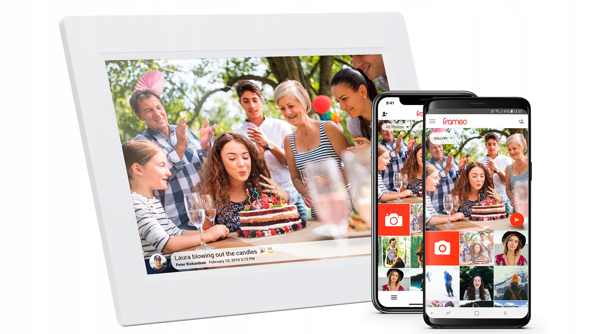 Просто подключите рамку к приложению FRAMEO через Wi-Fi и начните делиться своими воспоминаниями с семьей и друзьями. Рамка оснащена большим экраном с высоким разрешением, который позволяет отображать фотографии во всем великолепии и деталях.