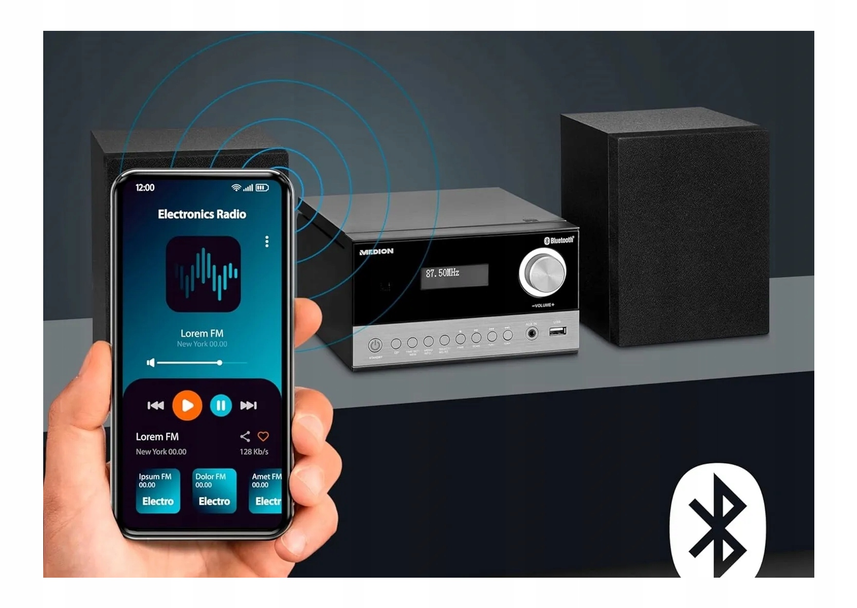 Дайте себе почти неограниченное удовольствие от прослушивания музыки в компактном формате благодаря этой Medion Audio Microsystem. Практическое, универсальное устройство с басовым усилением обеспечивает как сильный звук, так и многочисленные варианты воспроизведения музыки. Например, подключитесь к беспроводной связи с аудиосистемой через Bluetooth v5.0 на вашем смартфоне или планшете. Вы предпочитаете просмотреть свою коллекцию компакт -дисков? Интегрированный CD -плеер даже совместим с MP3. Вы нашли старую USB -память с музыкой? USB -порт поможет вам восстановить музыкальные воспоминания. Если вы просто предпочитаете слушать свою любимую станцию, радио Stereo 2 в 1 DAB+ и PLM предлагает красочный набор станций с отличным качеством звука. А если вы засыпаете: автоматическая функция сна автоматически превращает аудиосистему более 90 минут.