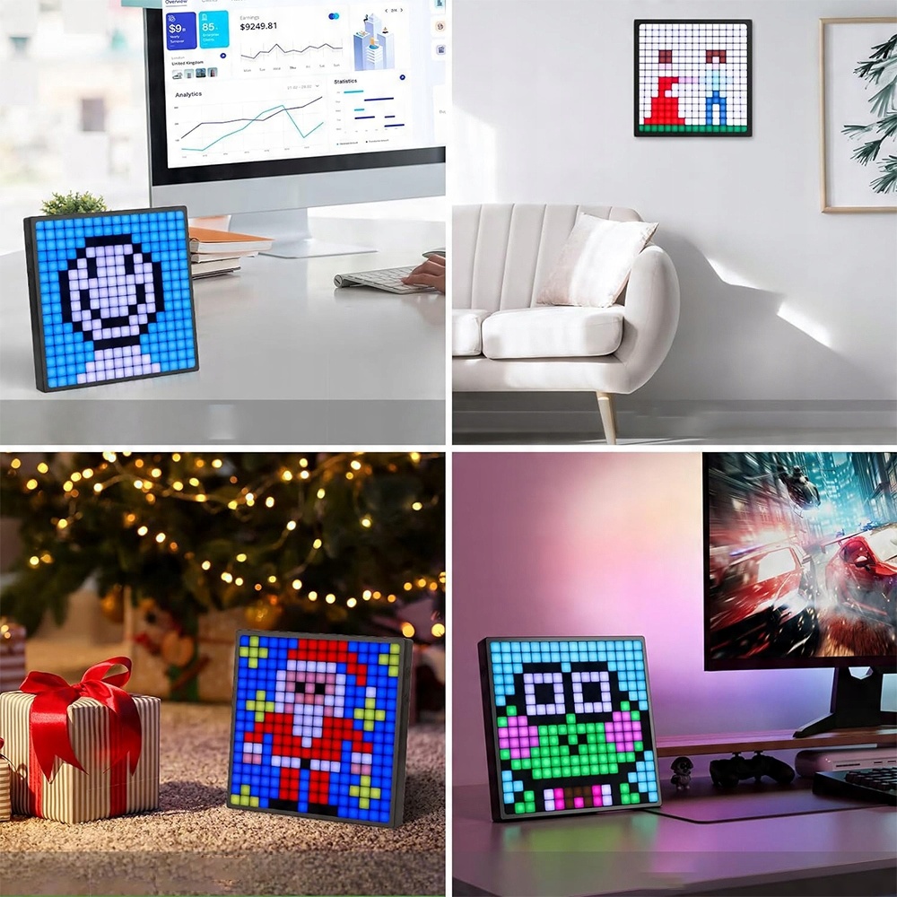 - ➖ Пиксельный экран прост в сборке и поставляется с подставкой и двумя отверстиями для крючков, поэтому вы можете легко поместите на стол или закрепите на стене.