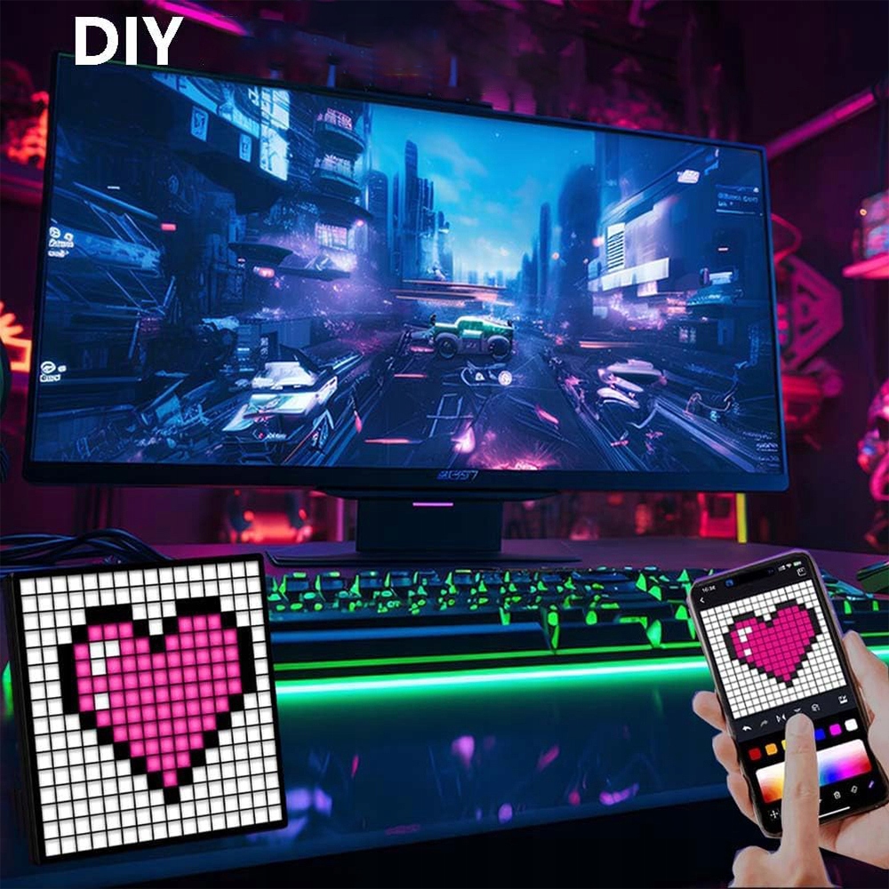 - Пиксельный дисплей LED оснащен светодиодным дисплеем высокого разрешения 16x16 пикселей.