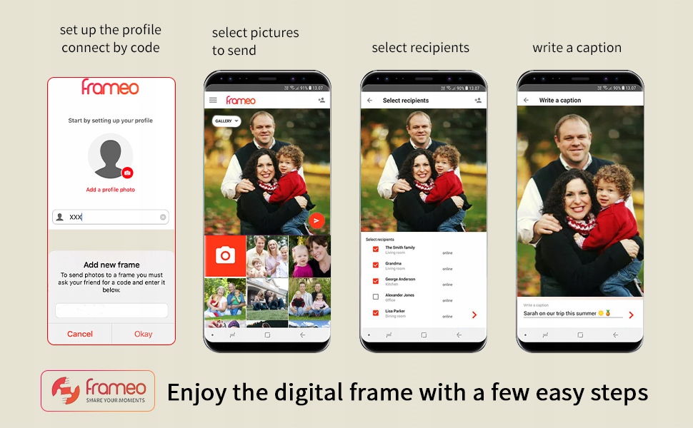 ❤️Чтобы добавить людей для загрузки фотографий в рамку, щелкните значок «Добавить друзей» на рамке. Будет сгенерирован код, которым вы сможете поделиться с друзьями и семьей, чтобы они могли подключиться и загрузить фотографии в рамку.