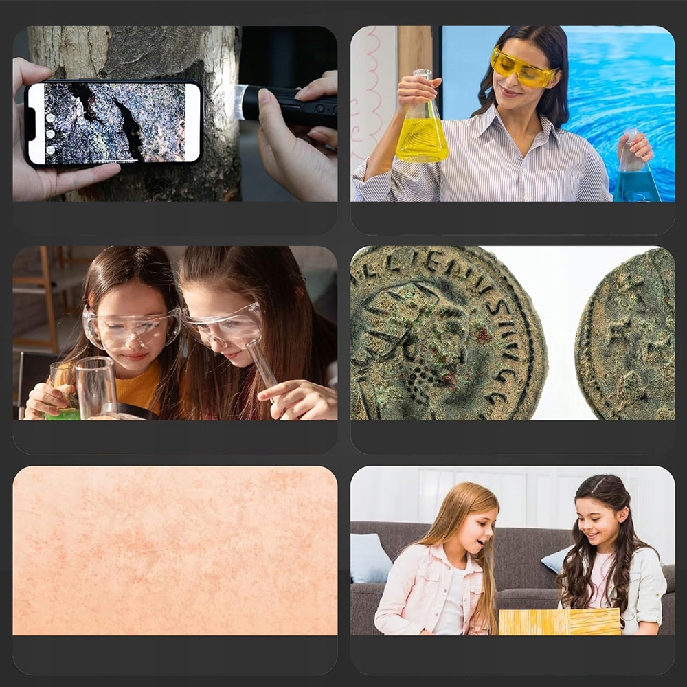 Этот карманный микроскоп предлагает диапазон увеличения от 50x до 1000x и разрешение 1920 x 1080. Это комплект микроскопа начального уровня, подходящий для биологических лабораторий в начальной, средней и старшей школе. Идеально подходит для наблюдения за монетами, марками, растениями, ювелирными изделиями, минералами, кожей, волосами и печатными платами.