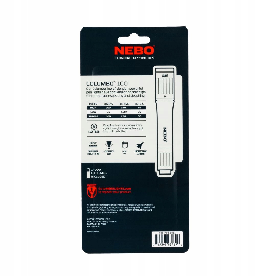 Columbo 100 Lumens Flashlight, Nebo Neb-Poc-0006-G