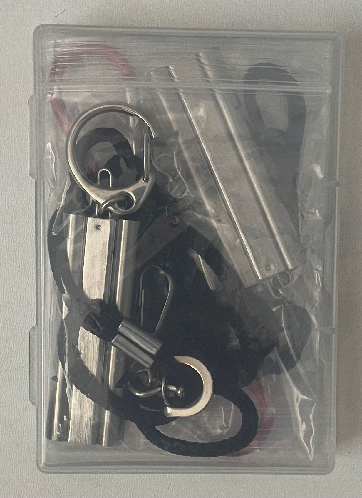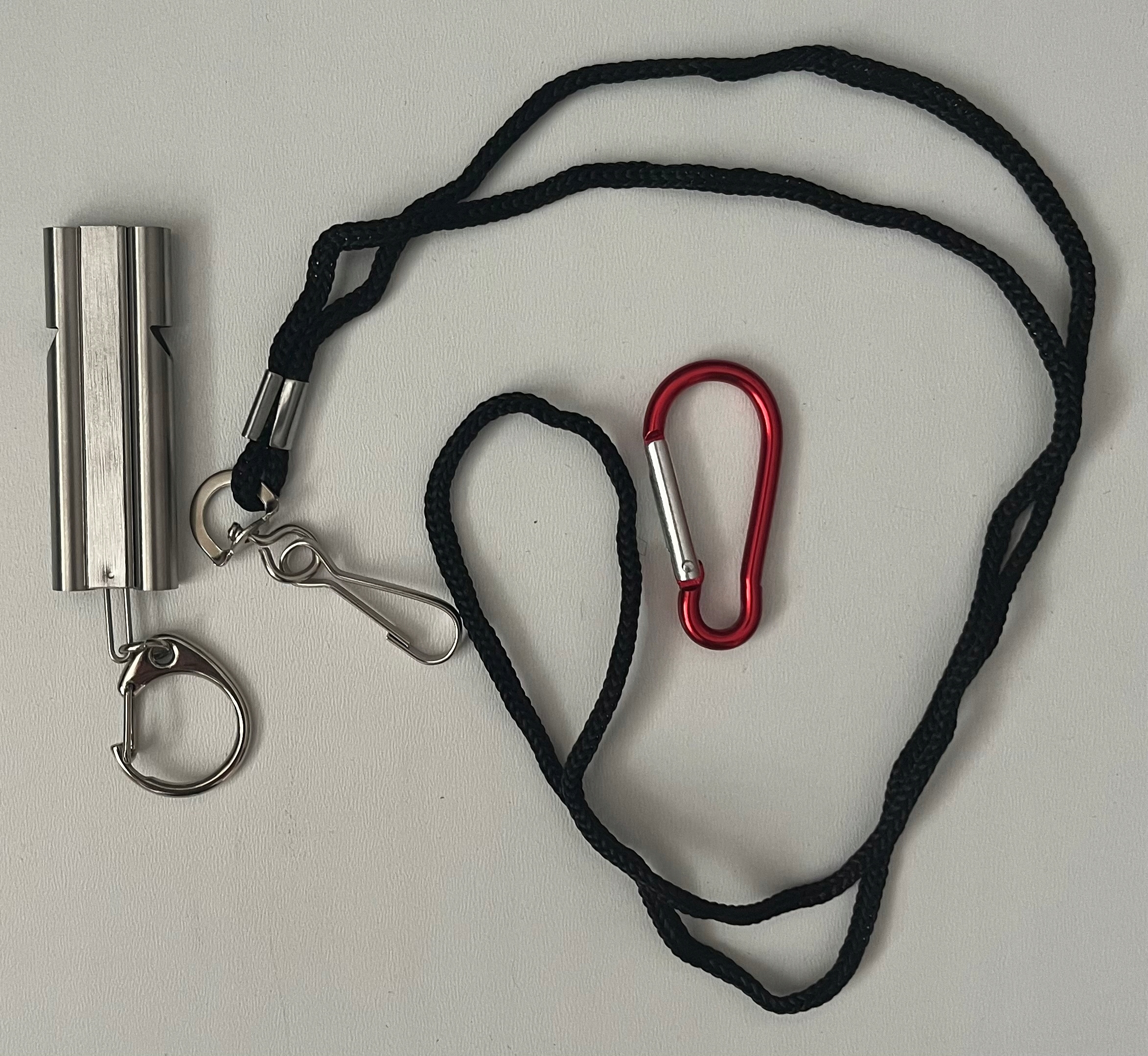 Набор включает в себя поводки и колесо клавиши , что позволяет прикрепить свисток к рюкзаку, сумке или клавишам.