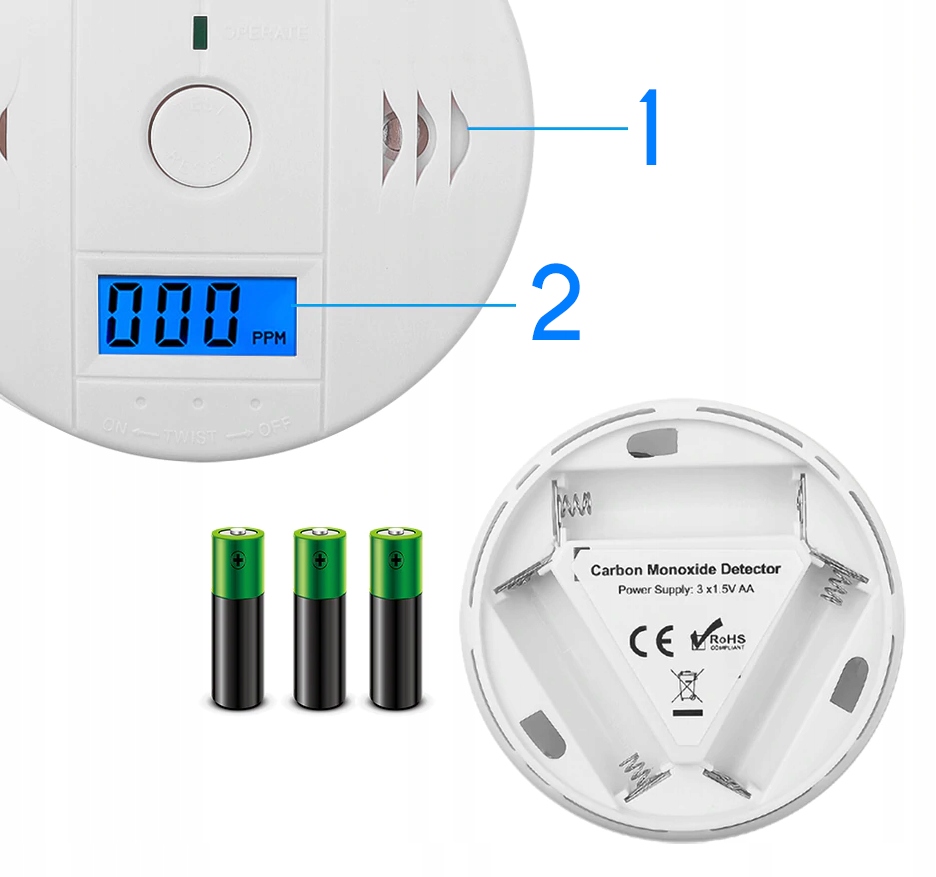 ⭐ Автономный (работающий независимо, с питанием от 3 батареек) датчик для обнаружения смертельно опасного, невидимого, не имеющего запаха угарного газа (CO), широко известного как CO2 или «Тихий убийца»