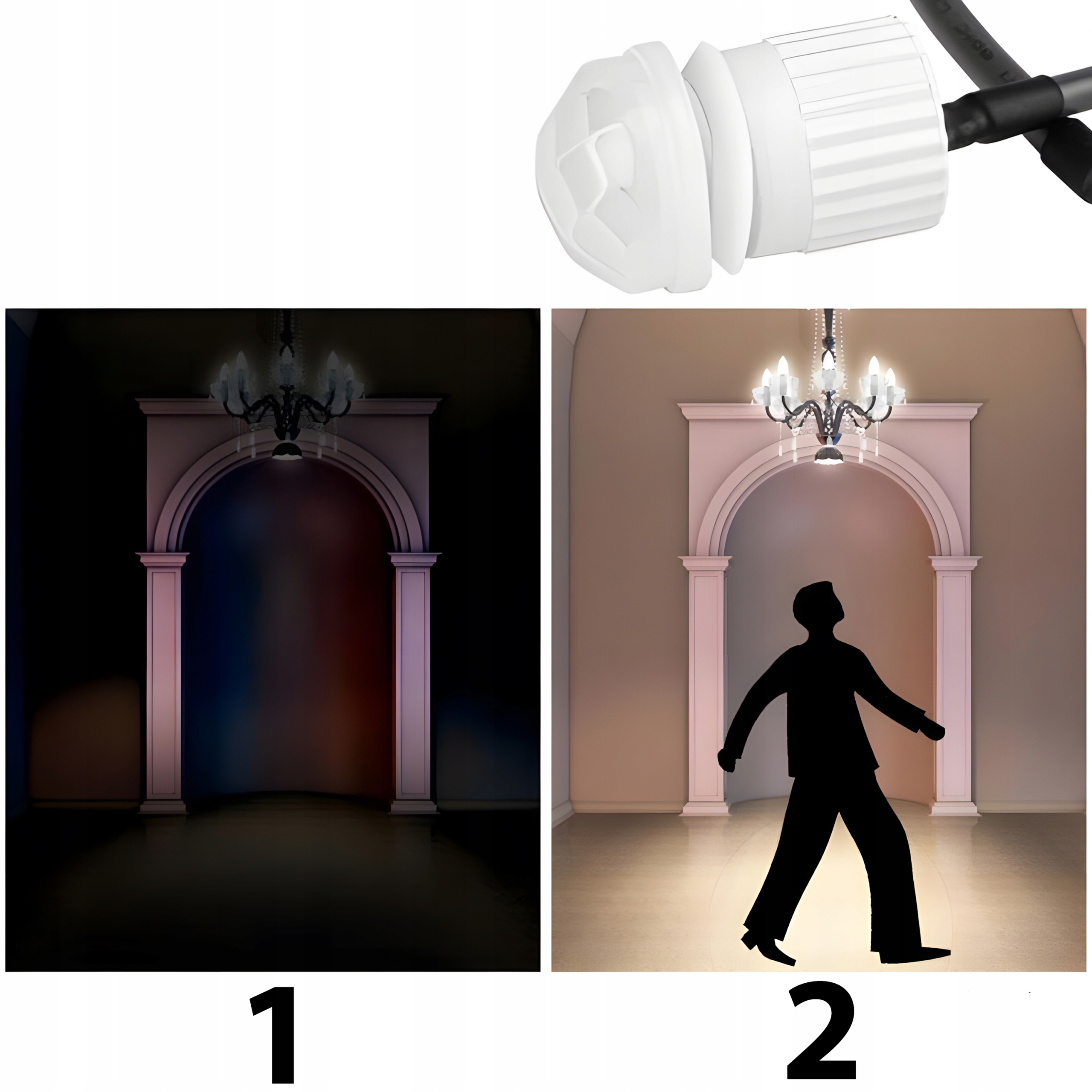 Автоматически выключает и выключает свет, улучшая комфорт жизни и экономит энергию, устраняя необходимость поиска переключателя
