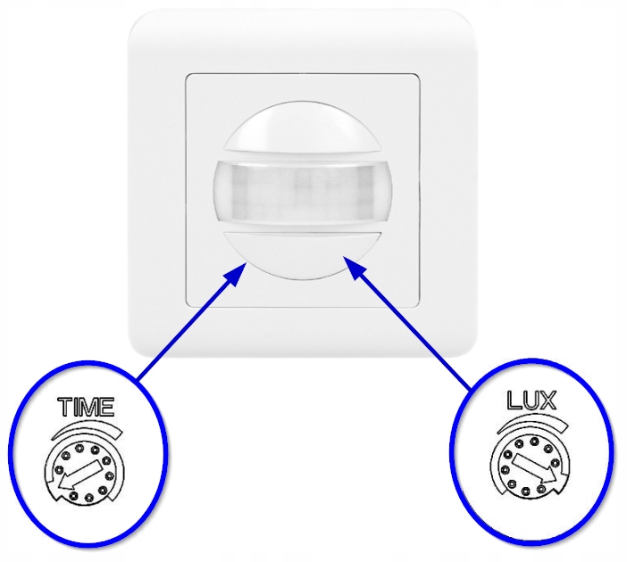 - Время освещения (время) - Возможность регулировать продолжительность времени, на которое остается свет: мин. 10 сек (+/- 3 сек), макс. 7 мин (+/- 2 мин)