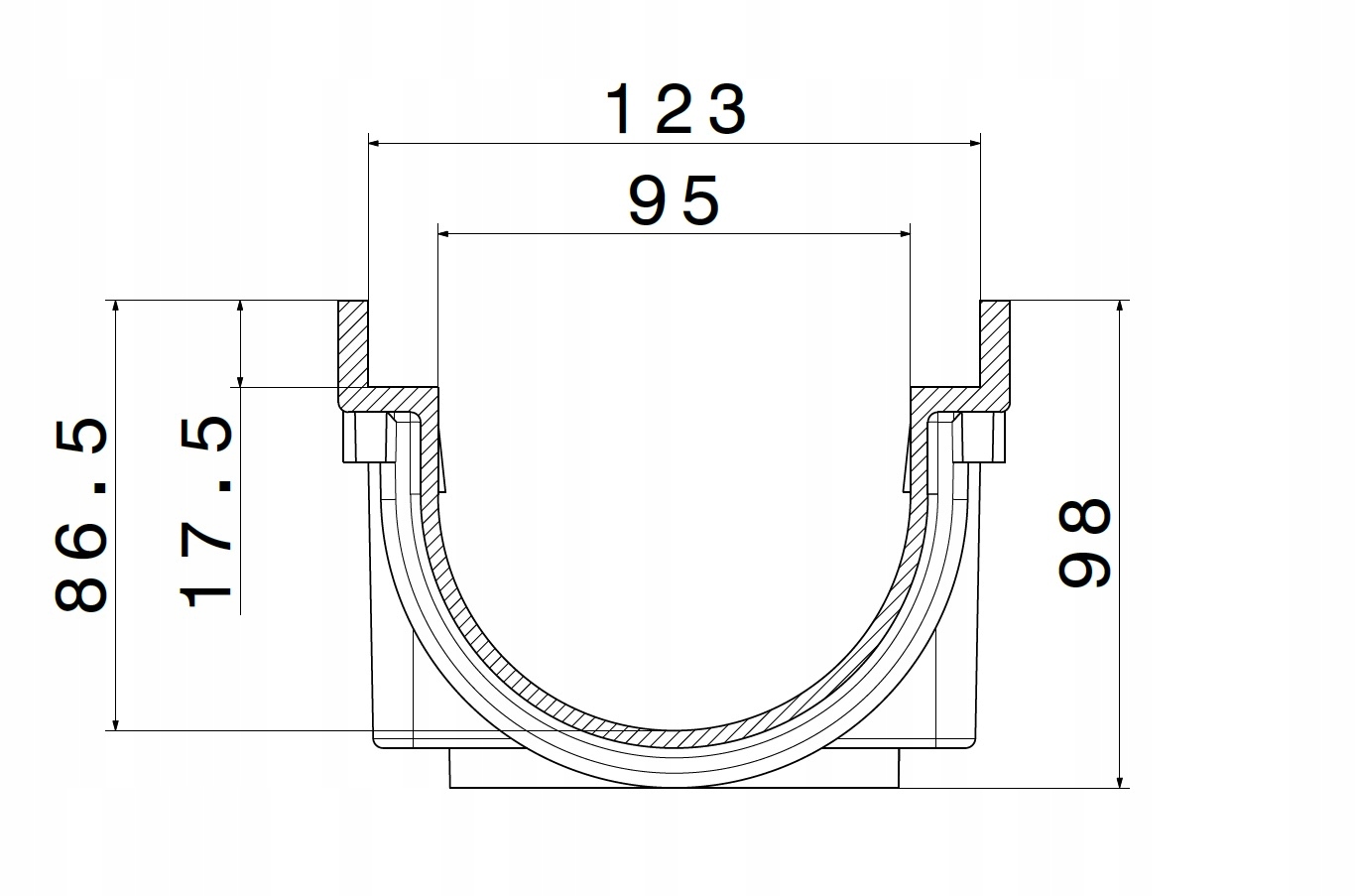 Ширина 135 мм, высота 98 мм, ширина в свете 95 мм. Доступно с пластиковой решеткой, с решеткой с поперечными мостами из оцинкованной или нержавеющей стали, с решеткой 30/30 и 30/10 в классе 15, а также с усиленной решеткой и чугунными решетками в классе C250 Идеал в Multi -Установите парковки и в подземных гаражах. Все решетки прикреплены с винтами из нержавеющей стали