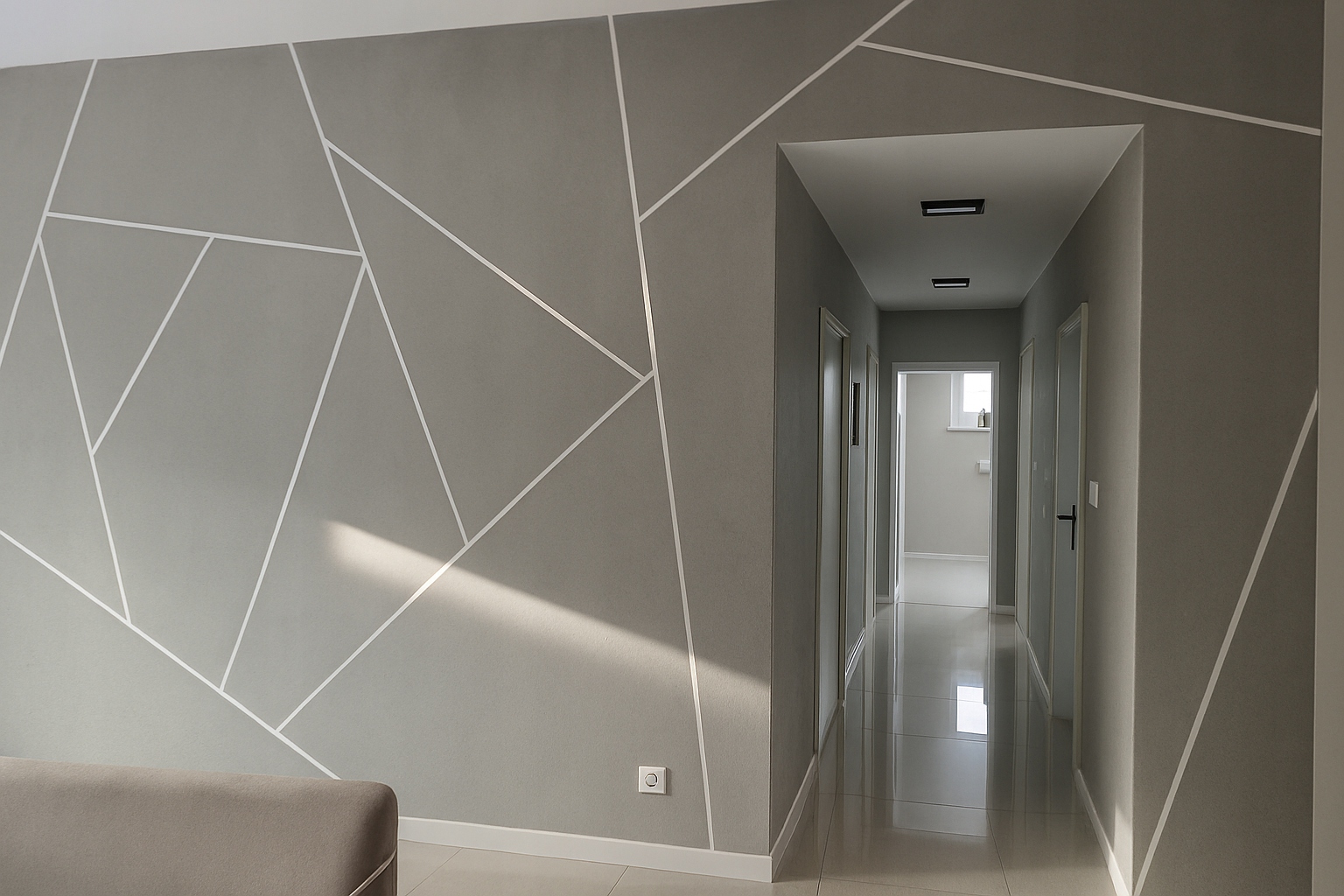 1 Этап На правильно подготовленной поверхности стены с помощью уровня или простой заплатки рисуем линии, которые в дальнейшем будут основой для нанесения золотой или серебряной краски. По намеченным линиям нанесите более толстый слой золотой, серебряной или черной краски. Один или два раза, в зависимости от степени цветового покрытия основания.