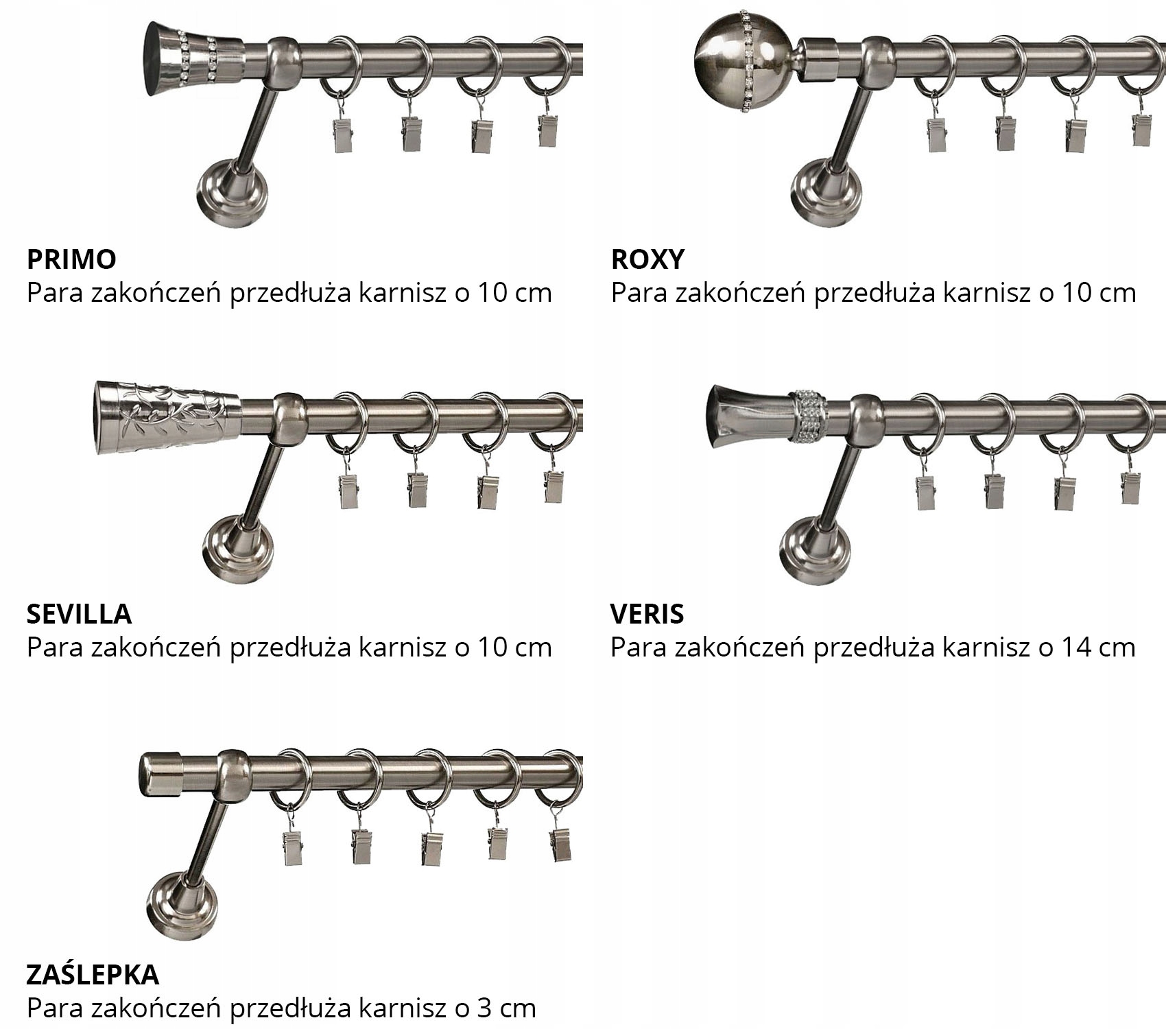 Длина этого штор -стержня без окончания составляет 200 см . Это длина трубки, декоративные окончания дополнительно вытягивают штор в зависимости от выбранной модели. В случае покупки слишком длинных стержней, всегда можно сократить его сами металлическим лезвием.