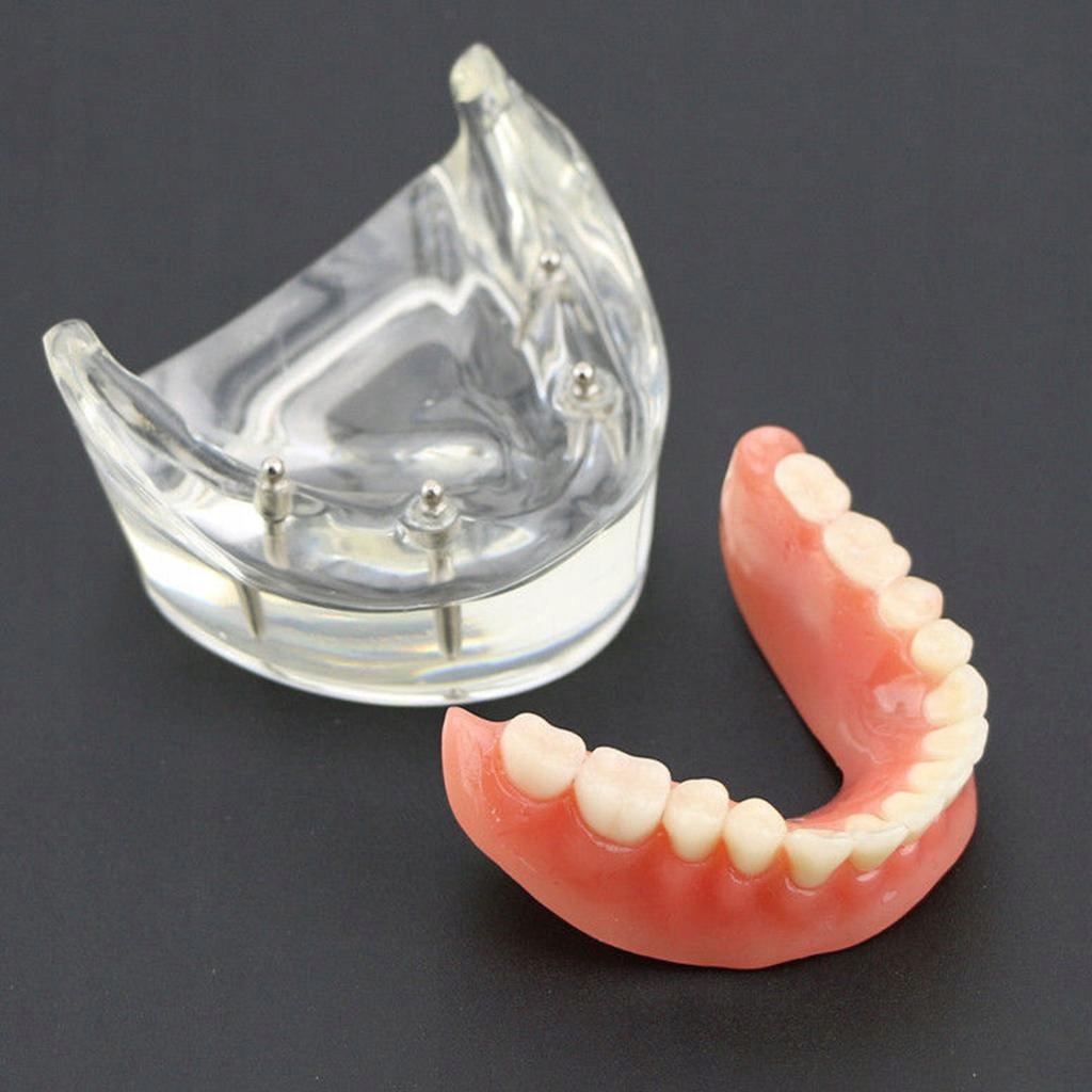 Прозрачная нижняя база челюсти позволяет видеть имплантаты
