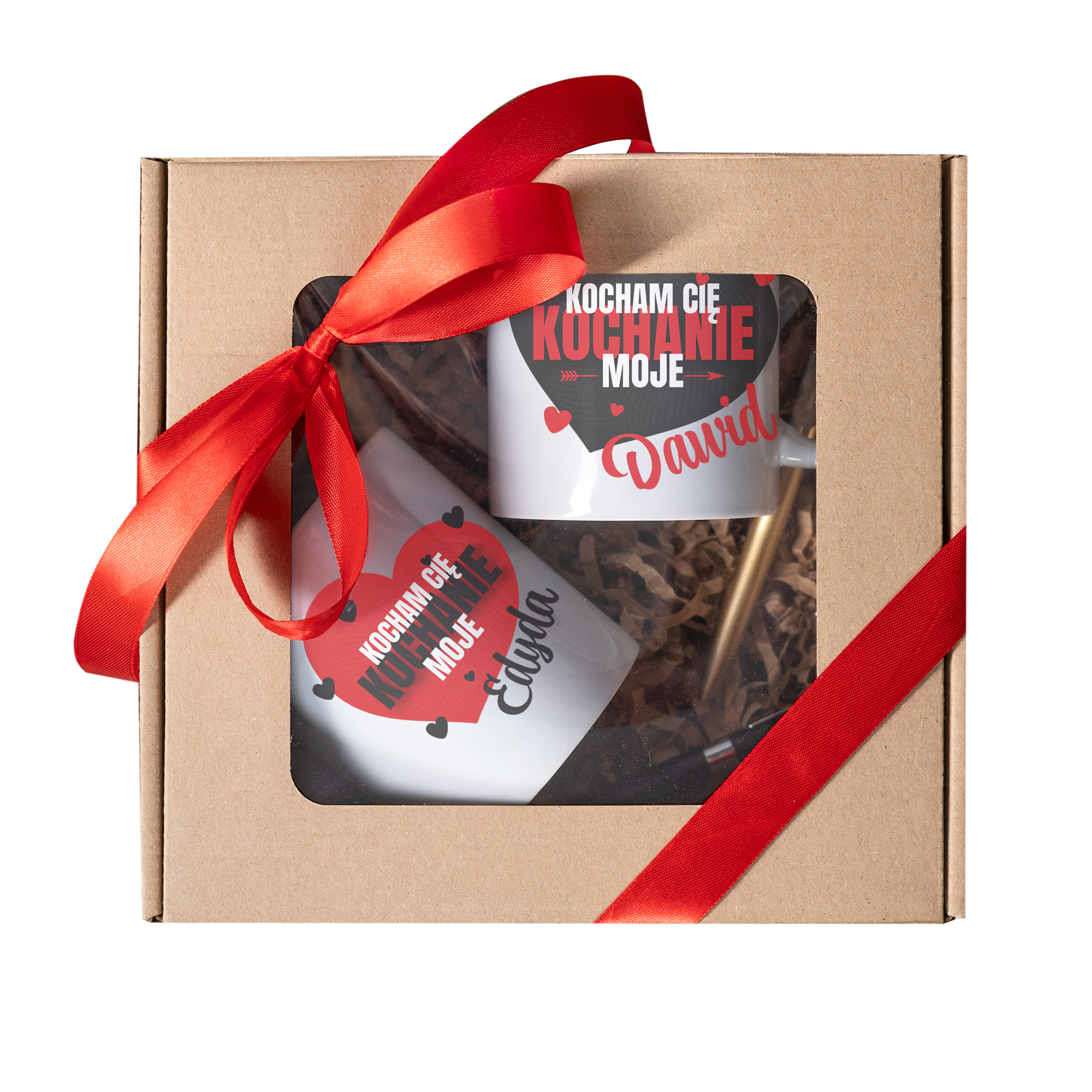 ПОДАРОЧНЫЙ НАБОР НА ДЕНЬ ВАЛЕНТИНА — ПЕРСОНАЛЬНЫЕ КРУЖКИ, РУЧКИ С ГРАВИРОВКОЙ