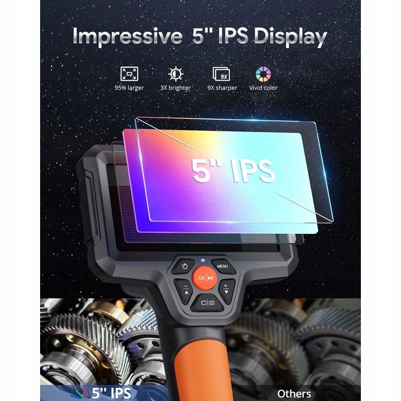 DS580 Инспекционная камера с Triple 2,0MP Converter и усовершенствованные алгоритмы изображения обеспечивают высокую ясность и детали изображения и идеально подходят для проверки на стены, Трубопроводы и транспортные средства . Спасибо Bluart Technology 3.0 эта инспекционная камера записывает изображения и фильмы, более плавные и уменьшает отражения линзы, позволяя быстро и точно Диагностика . Инспекционная камера DS580 обеспечивает большую, более четкую И более удобное зрелище. 5-дюймовый экран в сочетании с технологиями IPS воспроизводит реалистичные цвета и обеспечивает более четкие, больше Живое изображение, которое повышает эффективность проверки