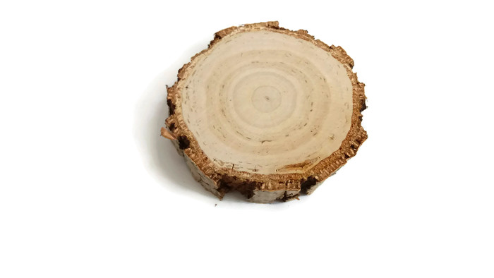 Деревянные ломтики березы с толстой темной корой, высушенные и отполированные.