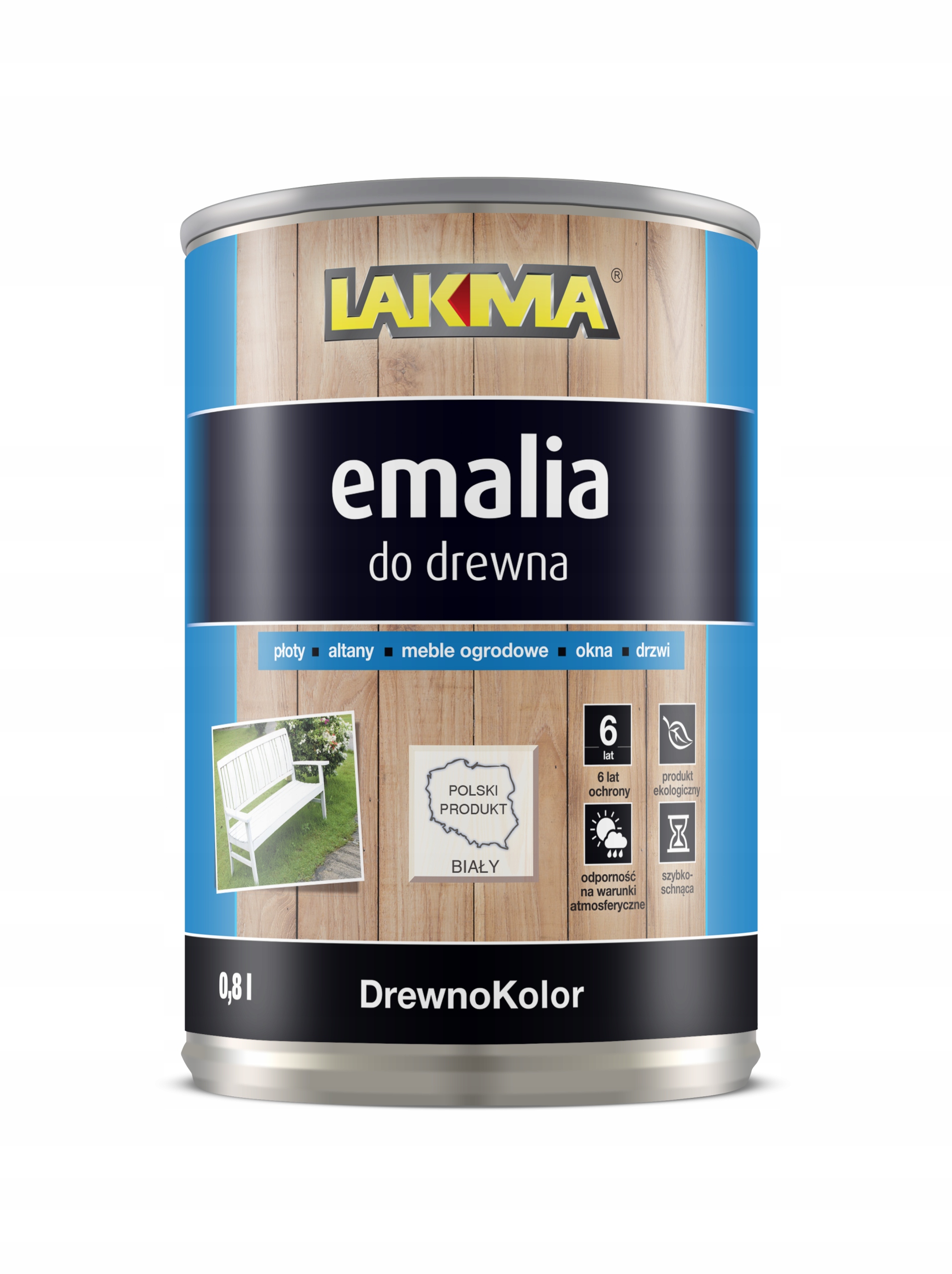 Современная водородная акриловая эмаль. Это создает быстрые, гладкие, эстетические покрытия с даже глянцевым или на полпути. Картины устойчивы к склеиванию, ультрафиолетовым излучениям и погодным условиям. Эмалевые покрытия являются твердыми и гибкими, устойчивыми к воде, мягкими чистящими средствами, используемыми в домашнем хозяйстве. Его также можно использовать для рисования ламперии на минеральных подложках и для покрытия обоев - обычных и структурных. Эмаль, после предыдущих попыток адгезии -совместимость продуктов, также может быть покрыта стальными поверхностями после предварительной гидросвязанной антикоррозионной почвы. базальт, тик, зеленый