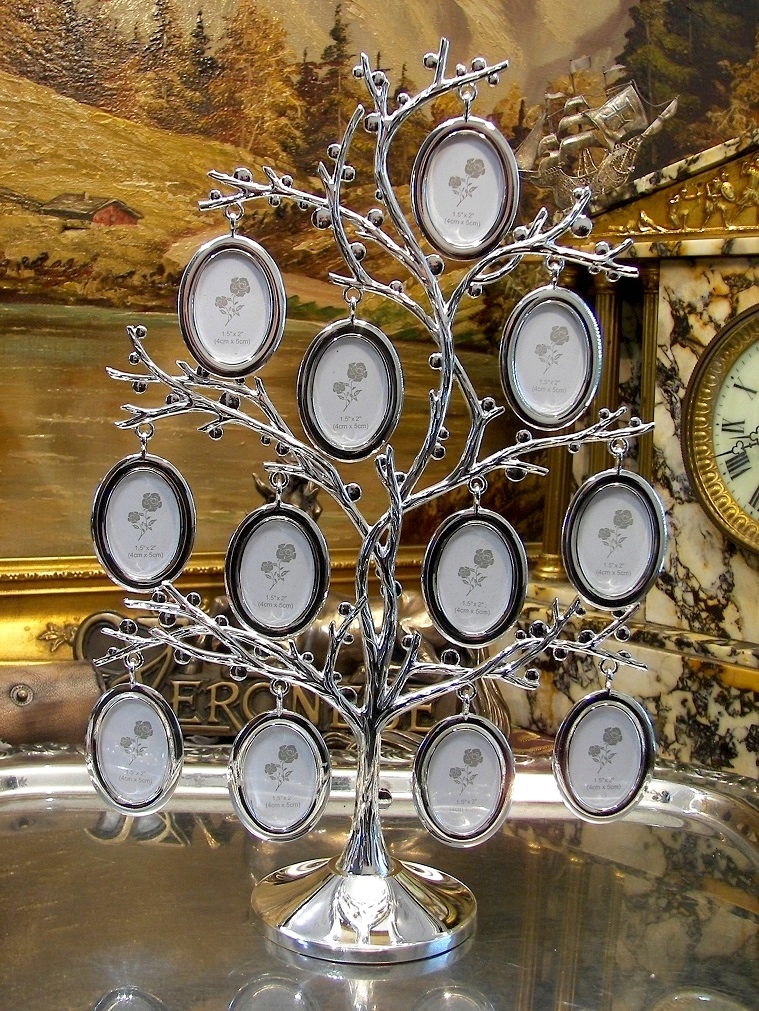 Приглашаю Вас приобрести красивое «дерево счастья», на котором Вы сможете кратко изложить свою родословную на 12 подвесках.Изделие выполнено из цинкового сплава, посеребренное, овальные рамки подвешены на декорированном рамка с изображением дерева. Все это чудесно сверкает при любом освещении. К сожалению, фотографии не передают красоты изделия. .Рамки для фотографий односторонние.Изделие выглядит просто великолепно. Отличный сувенир, подарок на многие случаи жизни: от дня рождения до свадьбы