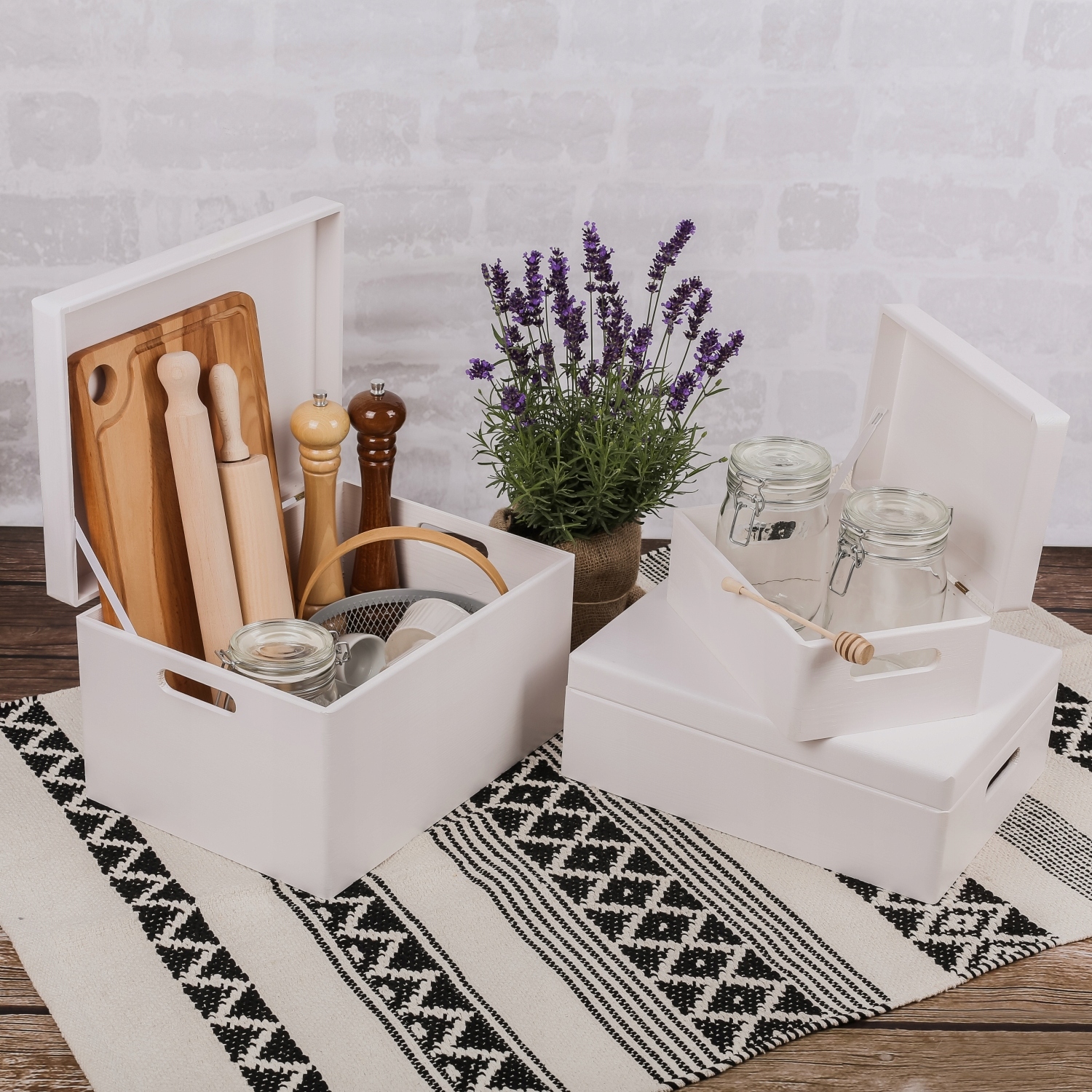 Дерев'яна біла коробка з ручками 30х20х14 см