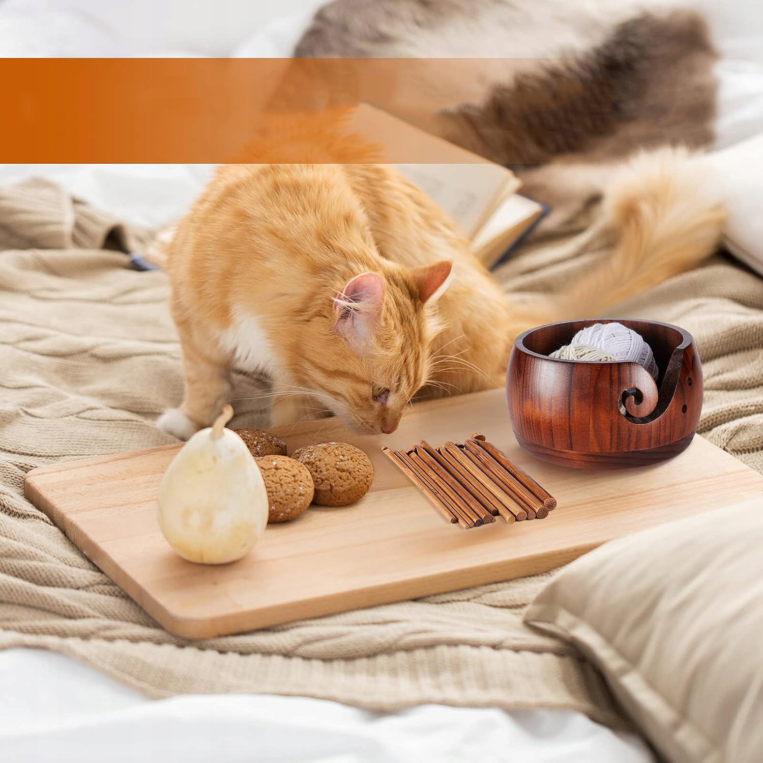 На боковой стороне чаши есть обернутый рисунок и 2 маленьких отверстия, через которые вы можете легко беспокоить и эффективно предотвратить запутывание нити, когда вязание; Эта деревянная миска для пряжи будет изысканной и практичной на журнальном столике или столе; Это также может быть использовано в качестве декоративной вазы, блюдо из конфеты или владельца растений