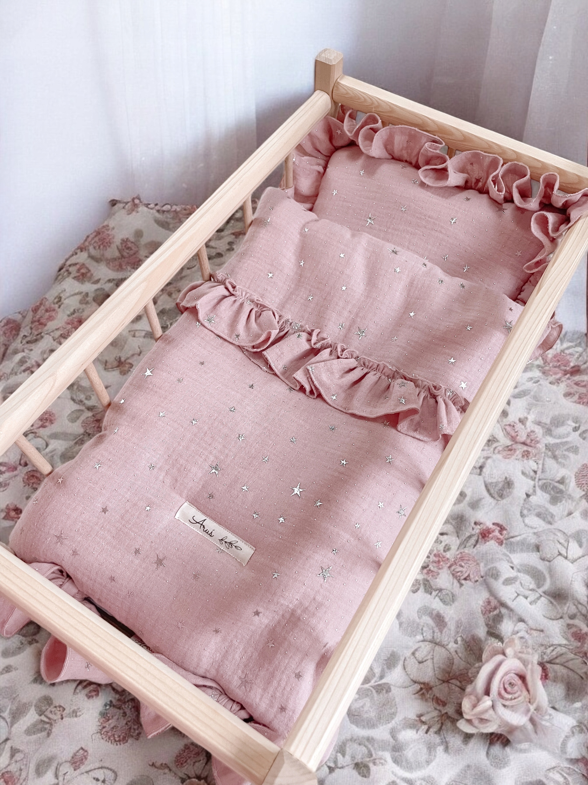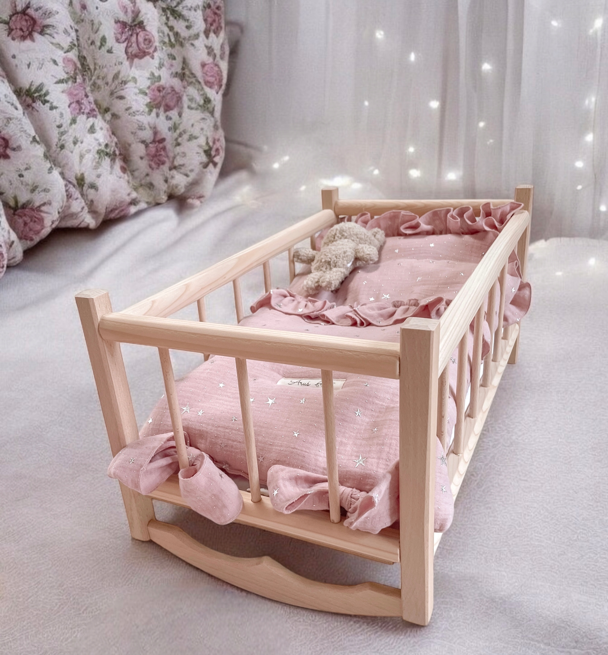 Деревянная корона для кукол с постельными принадлежностями