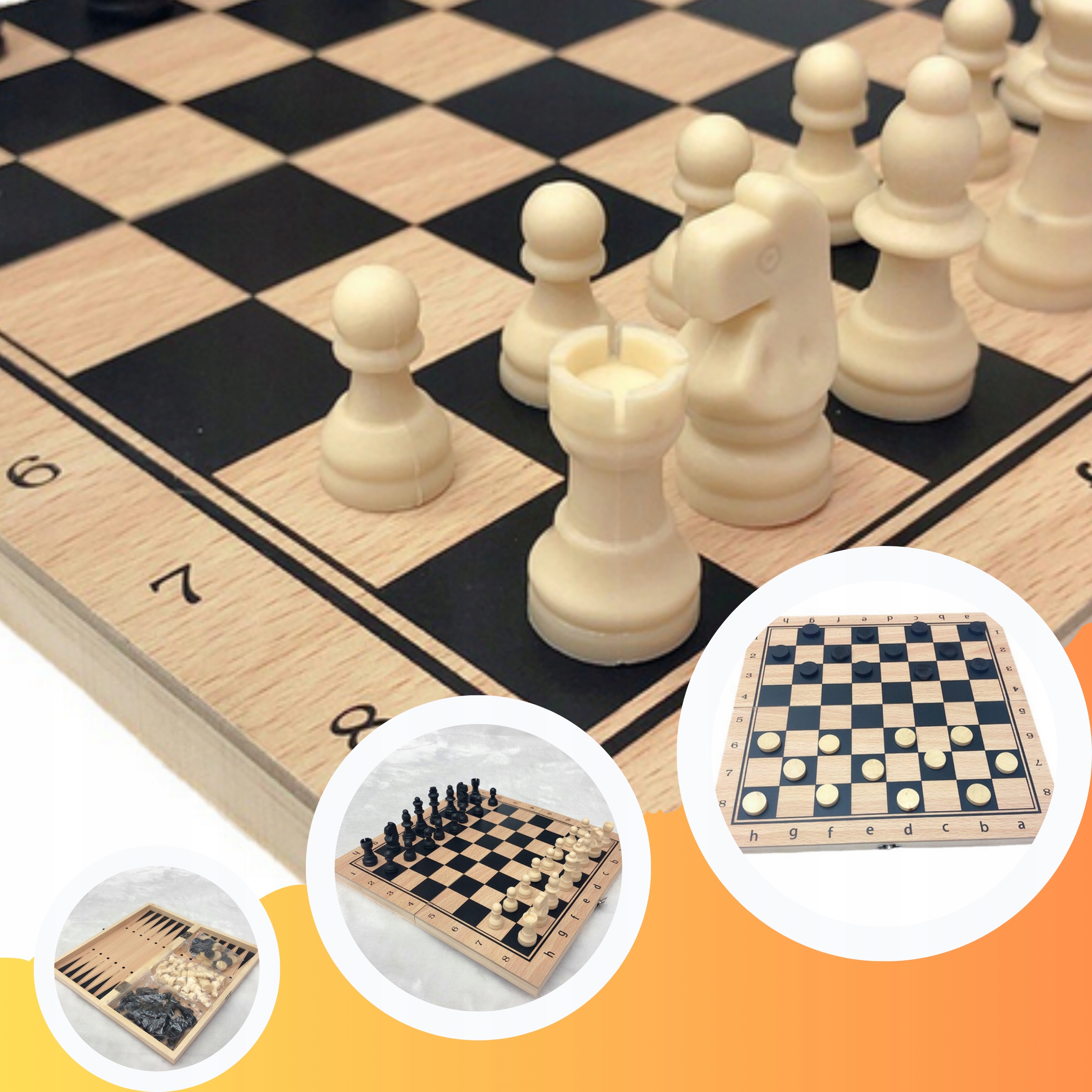 ⭐Образовательные игры: Шахматы и шашки известны своей образовательной ценностью. Эти игры развивают логическое мышление, стратегию, концентрацию и навыки планирования. Набор 3-в-1 дает возможность изучать и совершенствовать эти навыки в условиях различных игр.