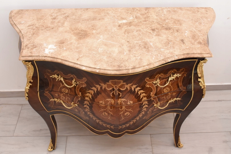 Многочисленные бронзовые фитинги - тяжелый мраморный топ.