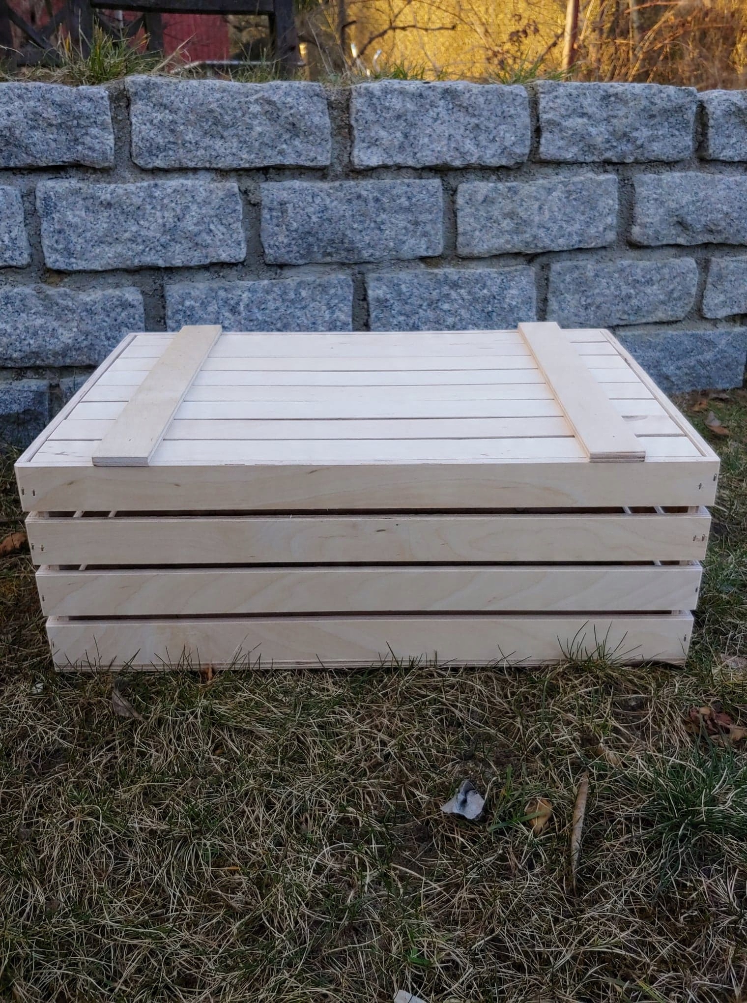 ЯЩИК + КРЫШКА новый, изготовлен из толстых досок - фанера (из лиственных пород) толщиной около 1 см, очень прочная.