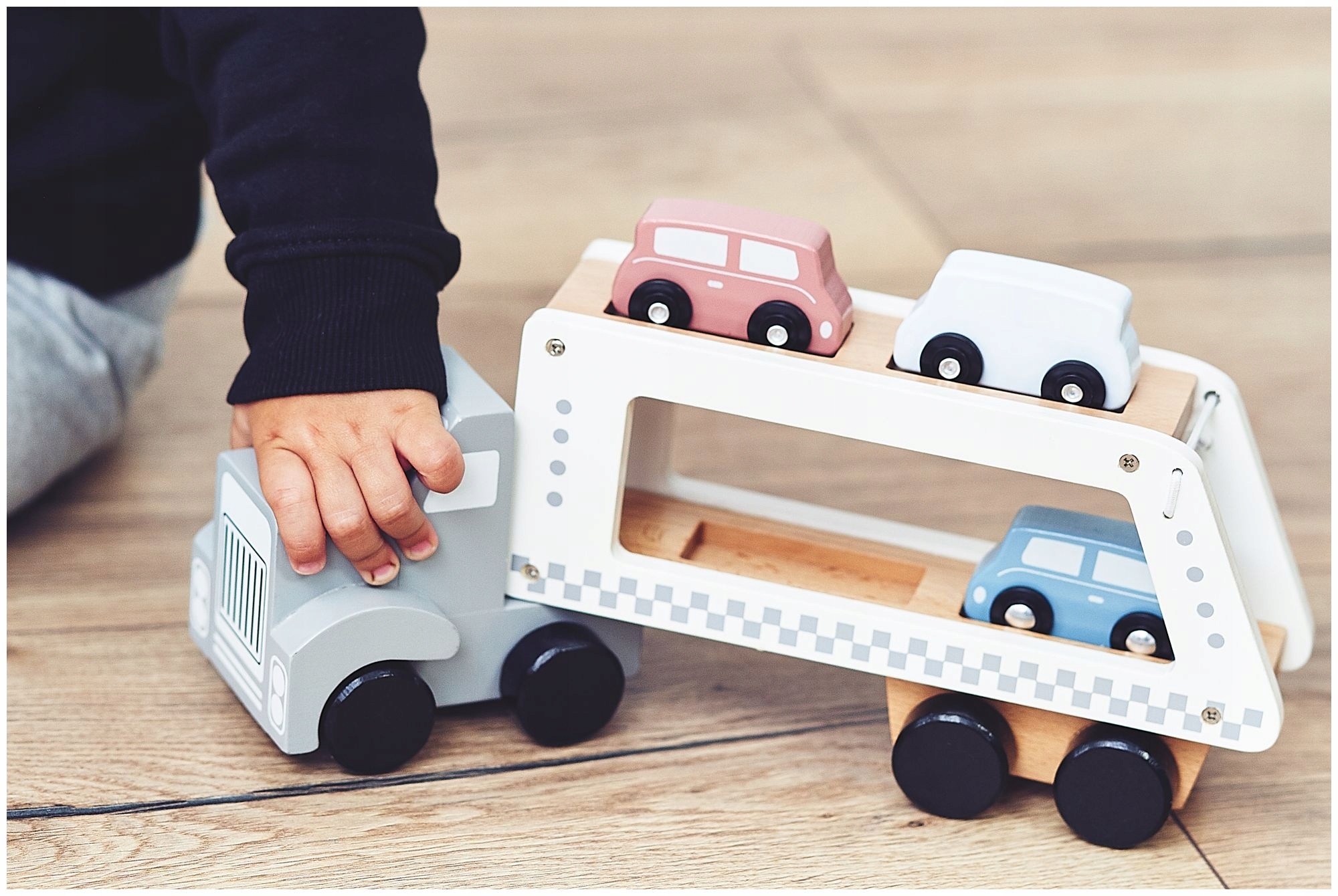 Деревянный эвакуатор с игрушечными машинками — идеальная игрушка для маленьких любителей автомобилей.