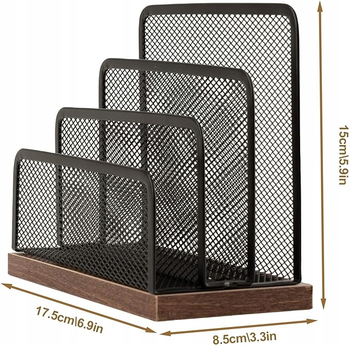 Подставка для писем имеет 3 отделения. Сочетание массивной металлической сетки и дерева в деревенском стиле добавит винтажный элемент вашему домашнему декору. Держатель для писем с 3 отделениями идеально подходит для хранения писем, бумаги, визитных карточек, документов, блокнотов, конвертов с металлической сеткой и элементов из массива дерева для экономии места на столе и столешнице.