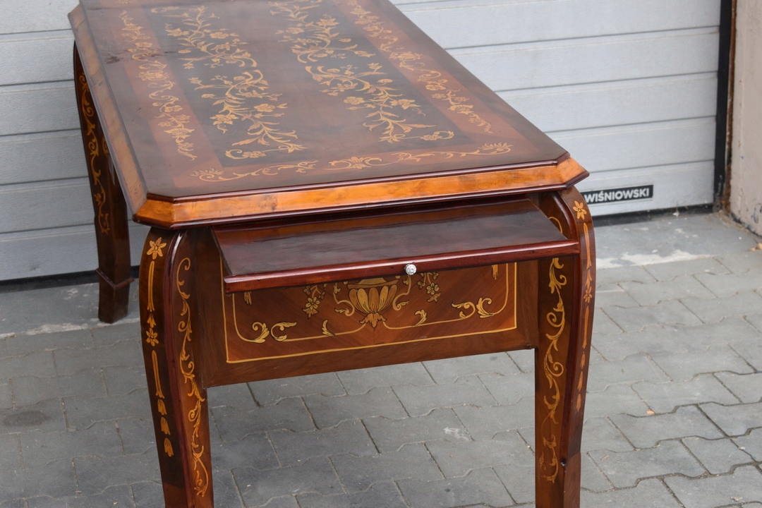 Мы представляем элегантный и стильный деревянный стол в стиле Art Deco, который идеально дополнит декор вашего офиса, гостиную или офис. Это уникальный предмет мебели, который сочетает в себе функциональность с уникальным дизайном, характерным для 1920 -х и 30 -го века. и интрассы