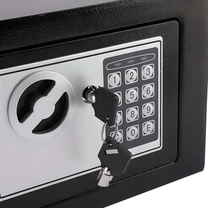 Электронный сейф — идеальное решение для хранения ценных вещей в вашем доме, офисе, гостиничном номере или другом месте. С помощью панели (клавиатуры) вы можете установить и изменить свой персональный код доступа. Ручка служит для открытия двери сейфа, закрепленной толстыми болтами.